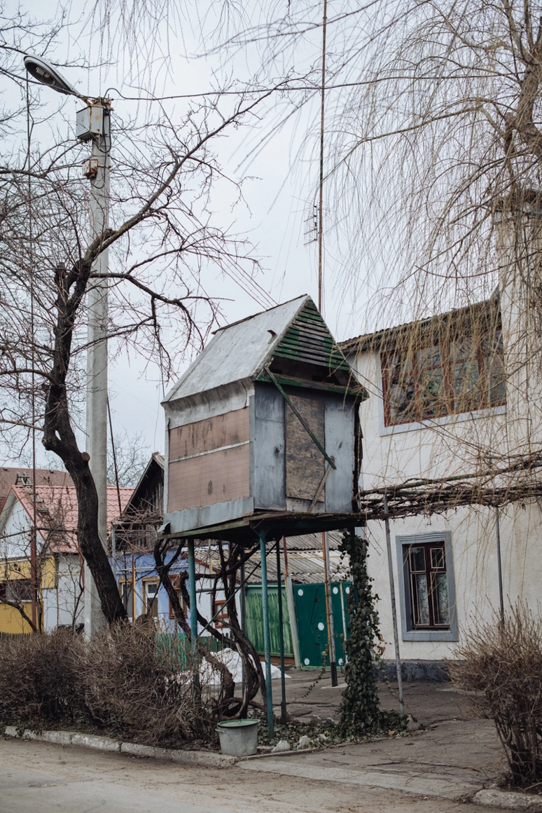 Căsuțele pentru porumbei arată ca lucrări constructiviste de artă de curte, construite de meșteri locali în epoca sovietică.