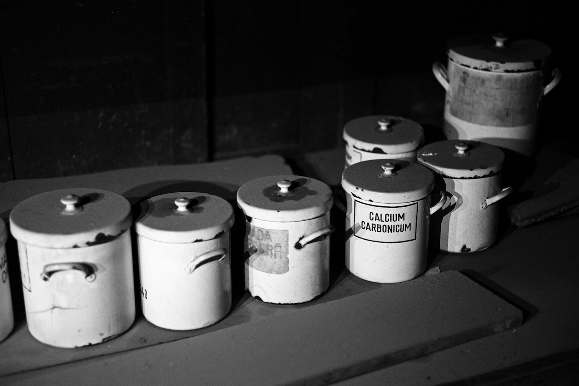 La subsol e un dispozitiv imens în care se amestecau medicamentele, distilatoare, vase mari din ceramică, eprubete, cutii. În depozitul de la mezanin e venena, un dulap ținut sub cheie în care se țineau substanțele foarte toxice.
