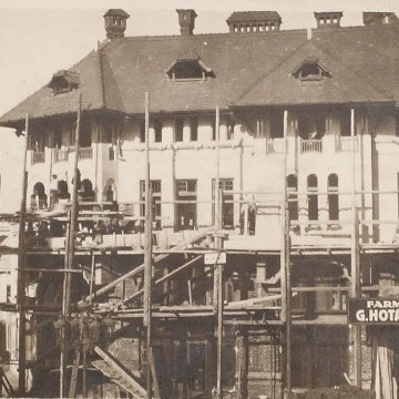 Clădirea a fost proiectată de către arhitectul Statie Ciortan, cel care-a desenat mai multe clădiri publice în stil neo-românesc prin București și Prahova. Un antreprenor italian, Ernesto Mazzolini, a ridicat imobilul și l-a finalizat în 1925. Mobila, împodobită cu marmură de Carrara și cristal inscripționat cu inițialele lui Hotăranu, a fost făcută la Viena.