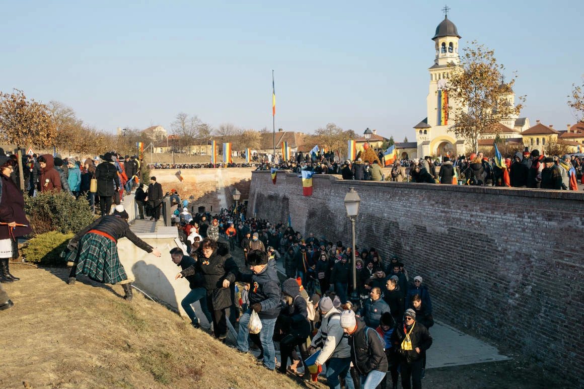 Aproximativ 200.000 de oameni au venit din toată țara la Alba Iulia, ca să participe la sărbătoarea Centenarului. Dintre ei, câteva mii au participat la evenimente îmbrăcați în costum popular, iar câteva sute au venit pe jos, pe cal, cu caruța trasă de boi sau de cai. Au parcurs sute de kilometri din Maramureș, Oaș, Covasna, Bucovina, Timiș, pentru a reconstitui drumul făcut de strămoșii lor acum 100 de ani. Un convoi de zece căruțe a venit din Sighetu Marmației. Un altul a venit cu căruța trasă de doi boi din Săcel (Maramureș), iar un tânăr din Covasna a venit pe cal până în fața statuii lui Mihai Viteazul, unde calul a făcut trei plecăciuni. Un basarabean de 77 de ani a venit pe jos din Bălți (republica Moldova): 520 de kilometri pe care i-a parcurs în 30 de zile. Am condensat atmosfera de la Alba Iulia într-o serie de portrete.