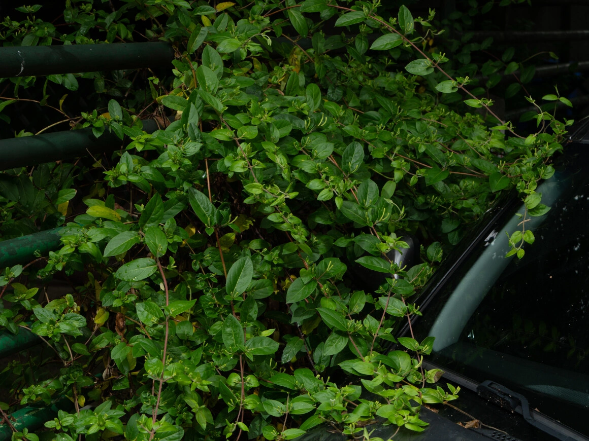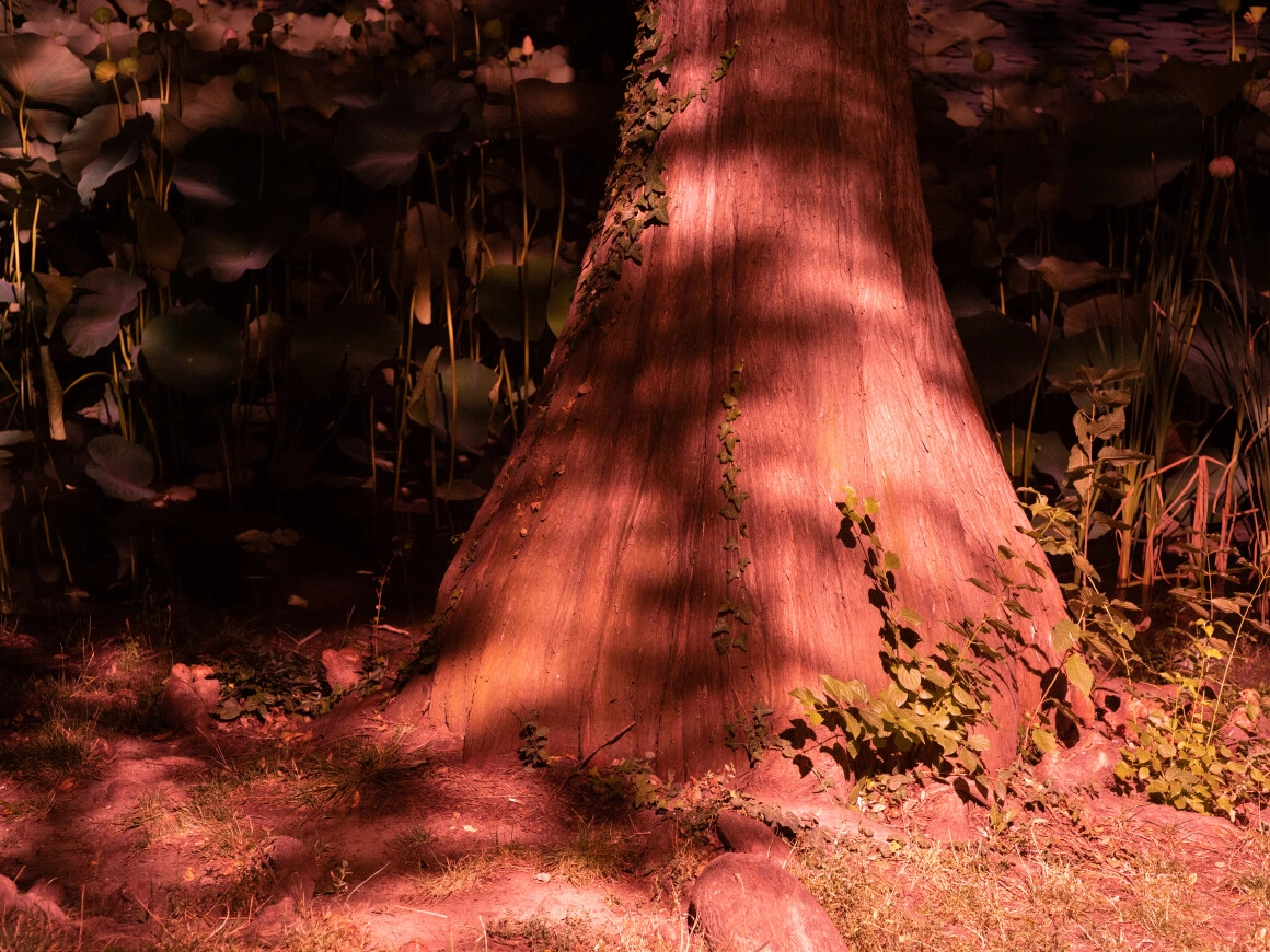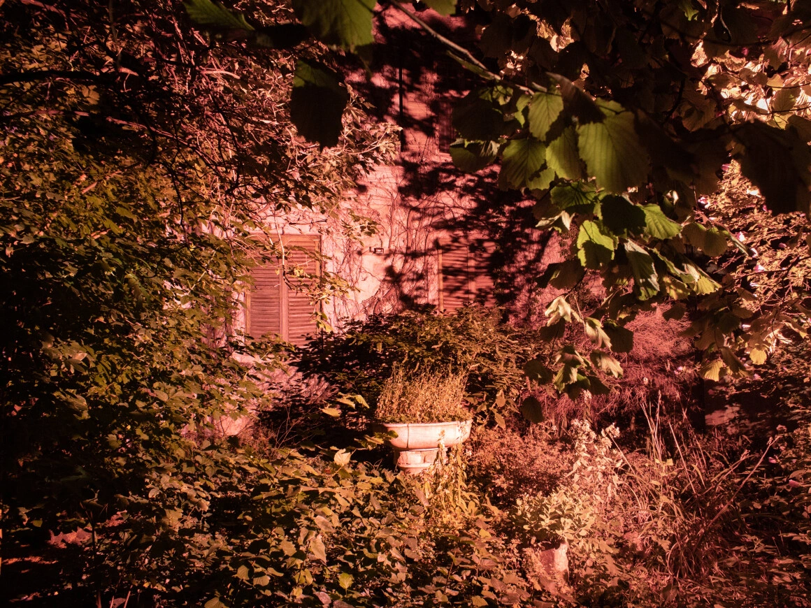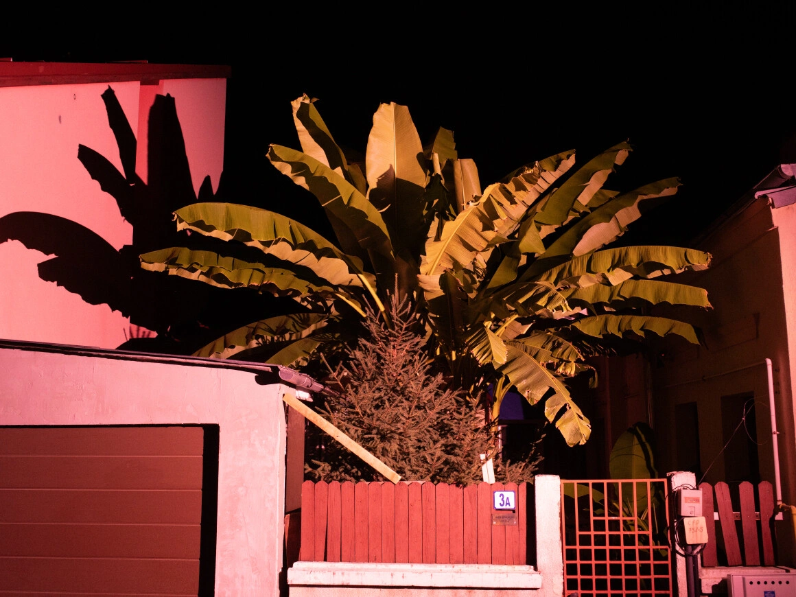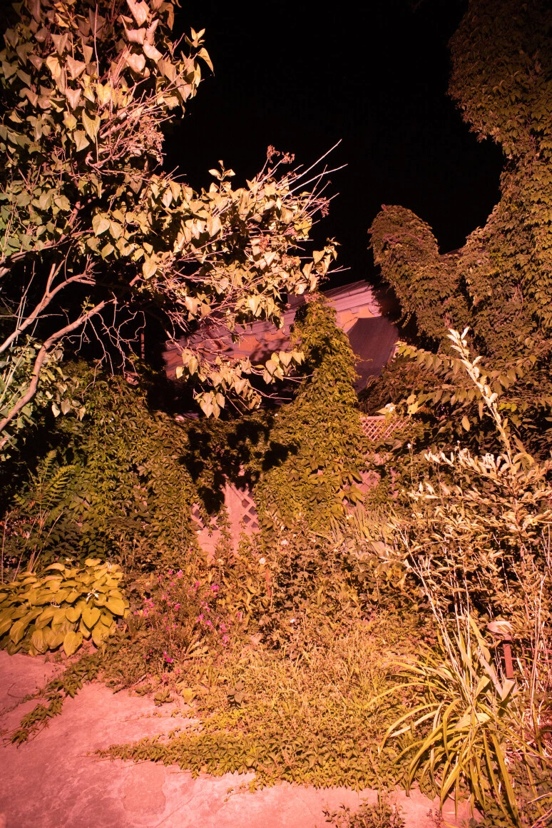 Cu ochii după frunze, am mai fotografiat o tufă urcătoare de Luleaua turcului (Campsis Radicans) pe la două dimineața în zona Arcului de Triumf, unde am avut noroc să văd la câțiva metri de mine într-un copac şi un ciuf pitic. Pe bulevardul Dacia, chiar în centrul Bucureștiului, aproape de o ambasadă, am tras cu blitz într-o curte sălbăticită ca-n Grey Gardens. Într-o altă noapte pe la Unirii, în zona cu case de pe la 1800, cineva a chemat poliția pentru că aparent „făceam parte dintr-o grupare infracțională care filează proprietățile oamenilor”. De fapt, încercam să găsesc unghiul și lumina potrivite pentru niște grădini năpădite de verdeață. Pe la 5 dimineața am dat o tură cu bicicleta prin răcoare să văd un arbore de Sequoia (Sequoiadendron) aclimatizat în Parcul Carol.Tot aclimatizat, am fotografiat un bananier (Musa × paradisiaca) înalt de peste 6 metri, într-o curte din zona Polonă.