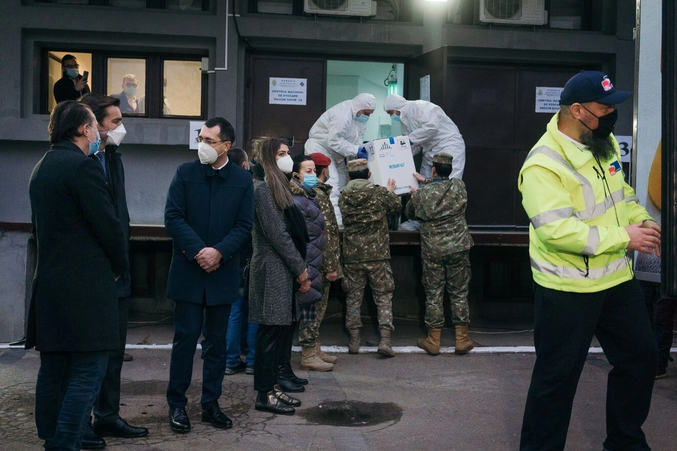 Primele 10.000 de doze ale vaccinului Comirnaty, produs de companiile Pfizer și BioNTech și de curând autorizat de Agenția Europeană a Medicamentului, au intrat în țară de Crăciun. Pe 26 decembrie, vaccinurile au fost primite oficial, în prezența unor membri ai noului guvern, la Institutul Național de Cercetare-Dezvoltare Medico-Militară „Cantacuzino” din București, desemnat Centru național de stocare a vaccinurilor împotriva COVID-19. De aici, 3.000 dintre ele au fost împărțite către zece spitale de boli infecțioase din România, unde au fost și urmează să fie administrate personalului medical din prima linie, care vor primi în scurt timp și dozele pentru cea de-a doua administrare - pentru a fi eficient, vaccinul Comirnaty necesită două administrări, la interval de minim 21 de zile.