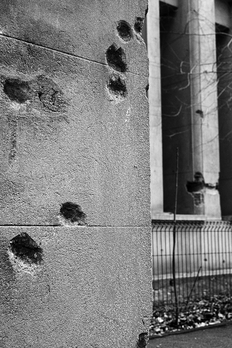 Pe lângă cearșafurile imense cu reclame la telefonie mobilă, pe balcoanele în care angajați stresați își fumează țigările, de jur împrejurul unei piețe în care membrii sindicatelor din Ministerul de Interne își strigă nemulțumirile, Bucureștiul își arată încă vechile răni. E plin de urme de gloanțe din zilele Revoluției de-a lungul bulevardului Magheru, pe strada Dem. I. Dobrescu înspre fostul sediu al Comitetului Central, apoi în jos pe Calea Victoriei. Ochii locuitorului de azi refuză să le vadă din prima: sunt rămășițe dintr-o realitate care are prea puțin de-a face cu cea de azi.