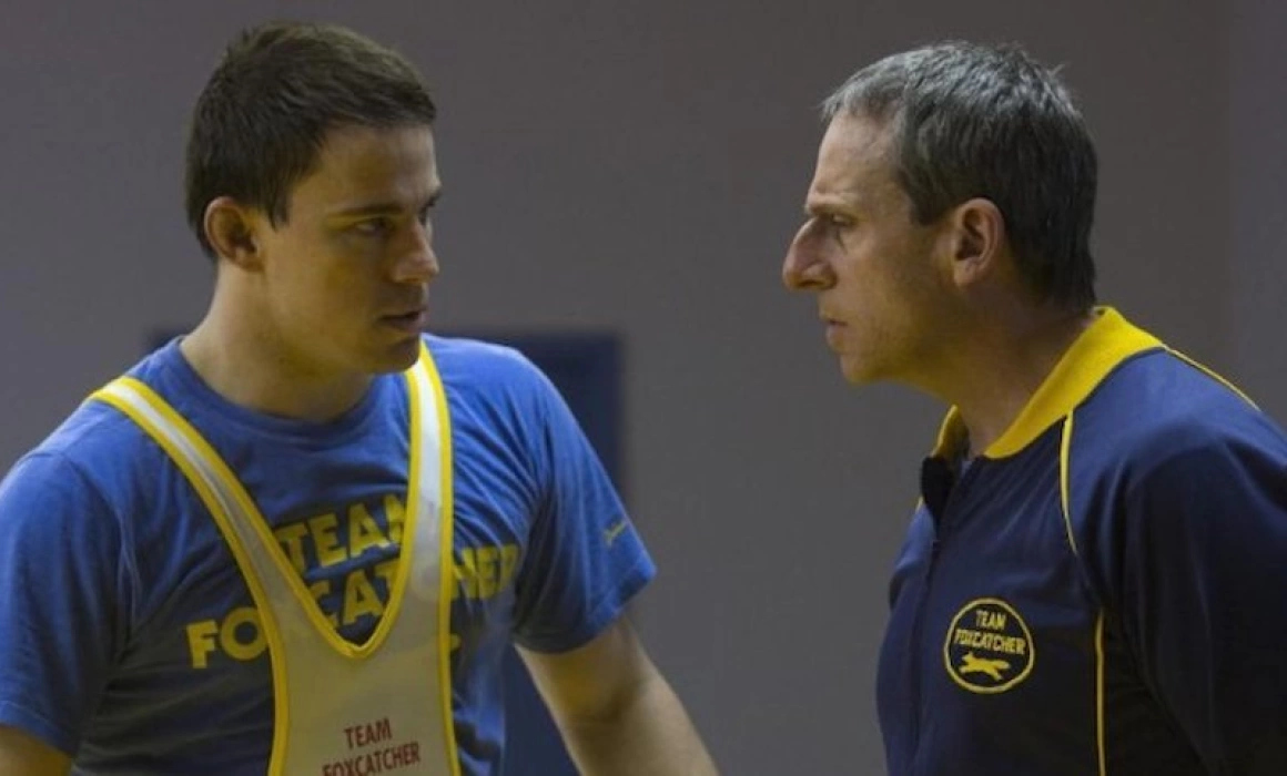 „Ce are du Pont de câștigat din asta?”, se întreabă iar și iar afabilul Dave, care în primă fază privește circumspect lucrurile. Aici, Foxcatcher își trădează originile de tragedie arhetipală cântată sub astrele capitalismului. Du Pont este adevăratul protagonist al filmului, cel care pornește spirala de întuneric. Incarnat de un Steve Carrell fenomenal, e un fel de Nosferatu în trening, care își târșâie pașii triști prin fiecare imagine, stingându-i iar și iar chiotul cu un aer de mormânt. Pielea îi e aproape albă și e imposibil să îi dai o vârstă sigură; iar în rarele momente când zâmbește, filmul accede instant către o dimensiune aproape horror. Nu pentru că, în sine, acest trup ar fi din cale-afară de diform – ci pentru că, realizăm, e doar vârful aisbergului, partea vizibilă a acestei vieți chirchite sub boala psihică.