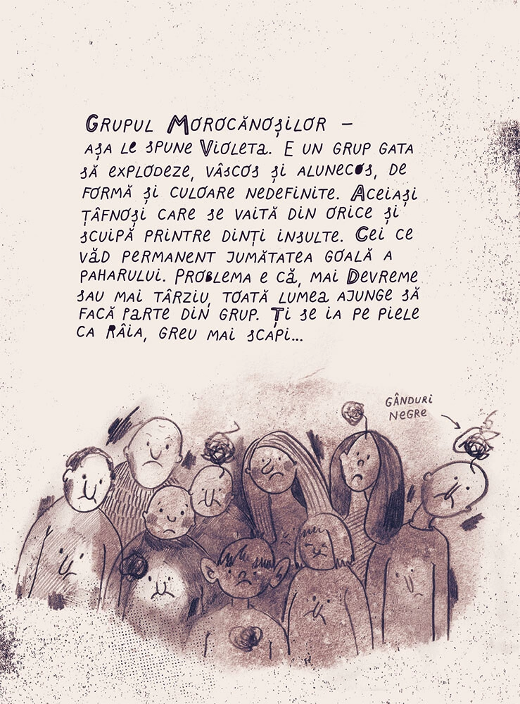 Iată și grupul morocănoșilor, fluid și bănuitor – ei sunt cei care își hrănesc gândurile cu tristețe, ciudă și ocară, ei sunt cei care nu mai speră și nu acordă credite.
