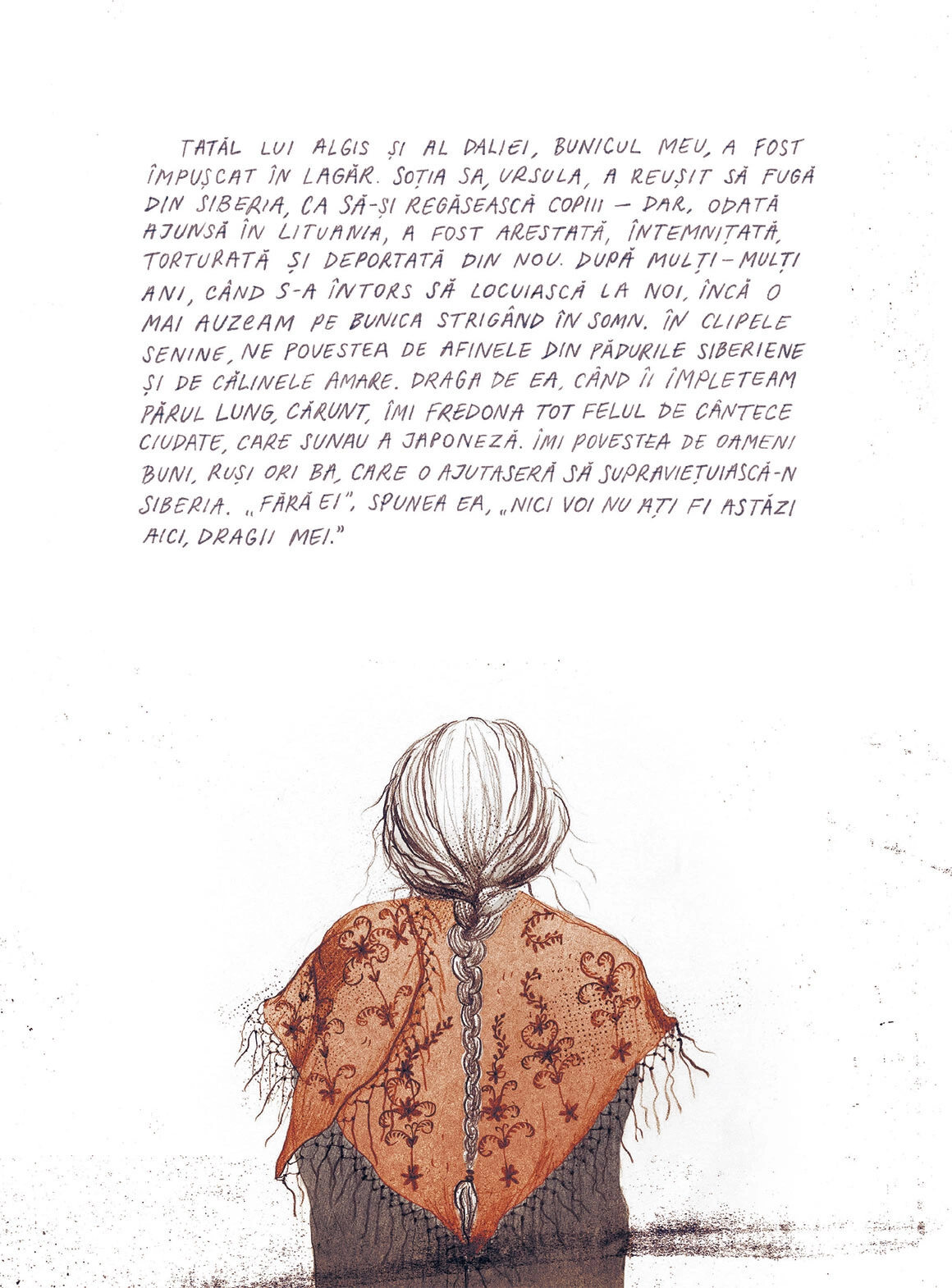Povestea scrisă de Jurga Vilė și-a găsit loc în inima mea de la primele pagini. Nu voi uita cum am sorbit prima lectură, cum s-au trezit în mine toate poveștile de război ale bunicului, mângâierile bunicii la culcare și veșnicele mele întrebări de copil: „Și cum a fost atunci când au intrat rușii în curte?”, „De ce v-au luat pădurile și vitele?”, „Mai spune-mi o dată, te rog...”. Prima lectură mi-a fost deopotrivă mângâietoare și răscolitoare.