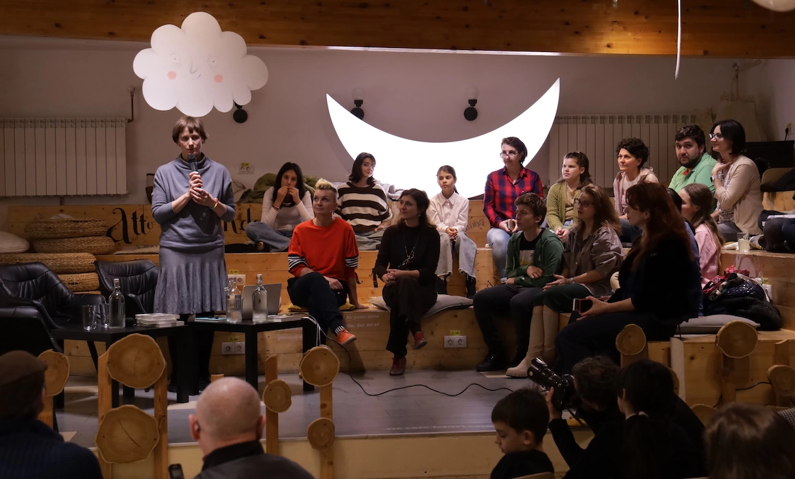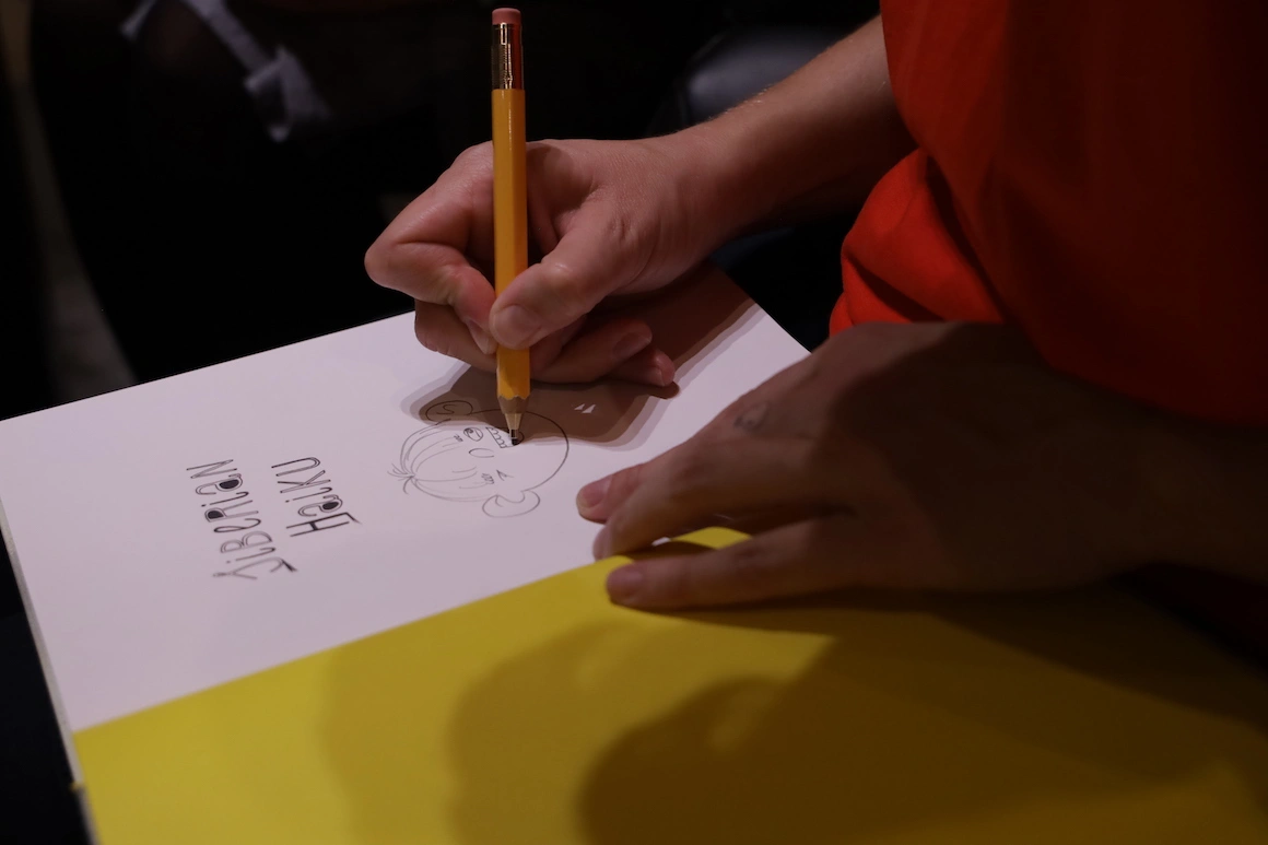 Dialogul celor două autoare cu publicul a fost extrem de viu – Jurga și Lina au răspuns cu multă sinceritate și căldură la toate întrebările pe care le-au primit, de la cele naiv-simpatice ale copiilor („Cum reușiți să desenați întotdeauna un personaj la fel? Mie nu-mi iese…”) până la cele serioase ale adulților, privind receptarea cărții în Rusia, în contextul războiului actual. Am aflat astfel că au fost nevoite să facă unele modificări pentru ediția în limba rusă, dar volumul a fost un succes. Din 2017, de la apariția Haiku-ului, Jurga și Lina s-au plimbat prin toată lumea, însoțind povestea în drumul ei către public – la final de noiembrie urmează să ajungă la târgul de carte de la Guadalajara, Mexic. Nu au mai colaborat la un alt proiect, fiind fiecare prinsă cu multe alte proiecte personale. Iar declarația ilustratoarei că s-a apucat să învețe desenul abia după vârsta de 25 de ani, ajungând să ilustreze prima carte spre 40 de ani ne-a dat tuturor speranță că niciodată nu e prea târziu.