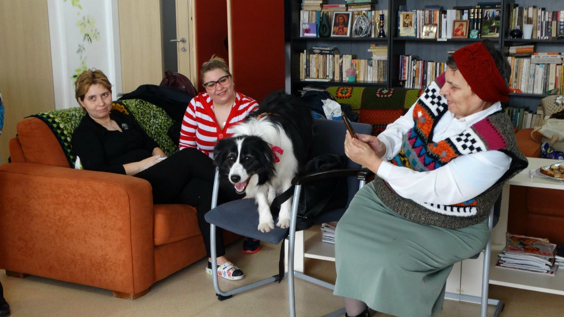 Într-o cameră însorită, un grup de femei pe la 50-60 și mai bine de ani răsucesc hârtii colorate în formă de petale, frunze sau spirale. Sunt tonice, râd mult. Fac schimb de rețete. Sunt înconjurate de obiecte lucrate tot de ele: pături împletite, tablouri pictate, colaje, figurine colorate.