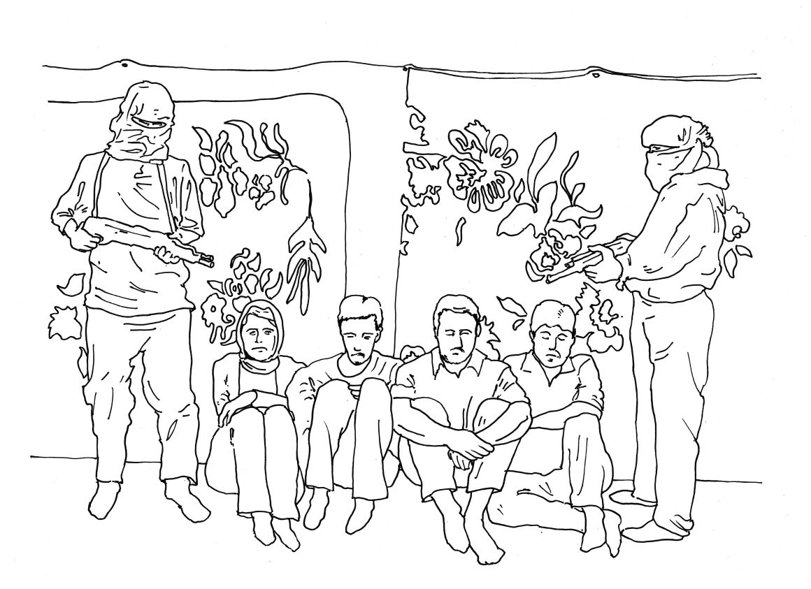 Răpirea din Irak se joacă pe 17 martie la Iaşi, în galeria Borderline Art Space. Este un re-enactment al evenimentelor mediatizate în legătură cu răpirea celor trei ziarişti români în 2005. Piesa s-a jucat pentru prima dată la MNAC şi o să încerc să o aduc la fiecare expoziţie. De ce să vedeţi piesa? Pentru că seamănă cu unul dintre desenele mele: recunoşti personaje, recunoşti evenimente, ai referinţe, eşti informat... dar întrebările nu încetează să apară. Ce este adevărat în ceea ce vedem şi în ce măsură un adevăr exprimat artistic stă lângă un adevăr exprimat „documentar”?