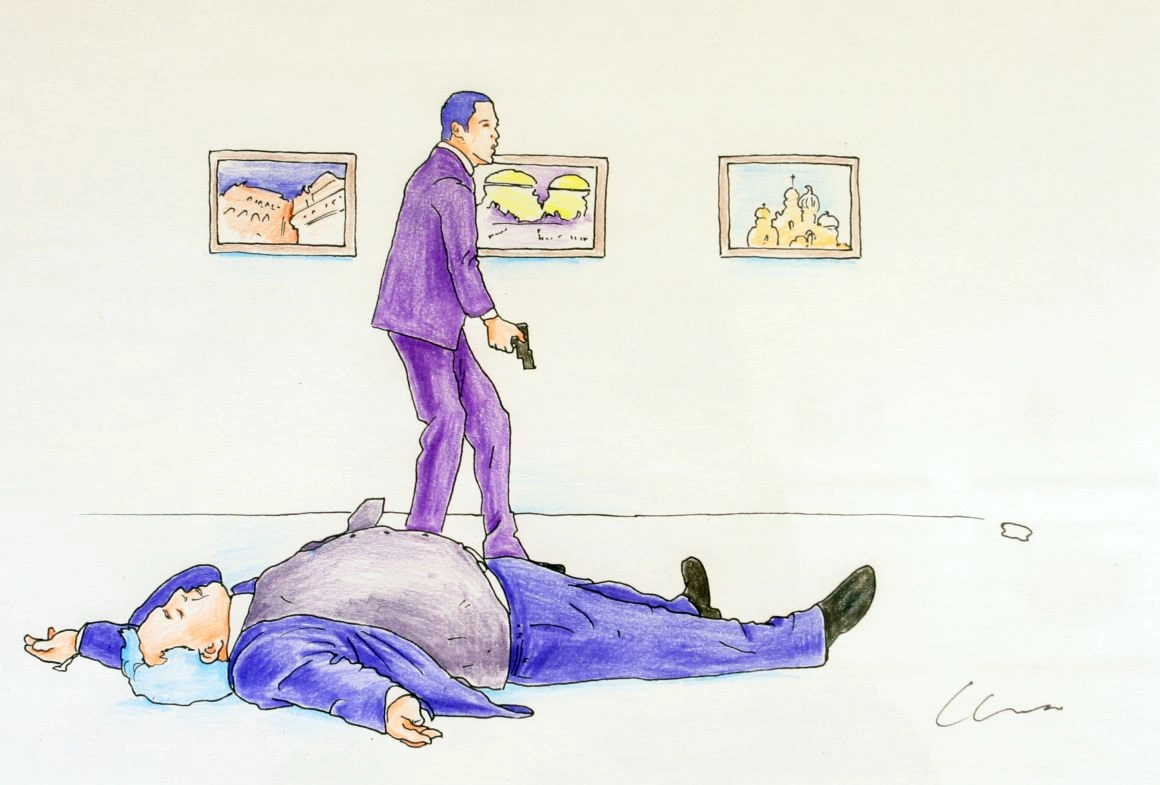 [Pentru expoziţia din Iaşi], am colorat cu creioane colorate desenele din cartea de colorat şi am mai adăugat imagini noi, cum ar fi asasinarea ambasadorului rus. Tripticul (n.r. – un ansamblu de trei picturi) este pictat special pentru expoziţia de la Iaşi. Am făcut figurine din plastilină cu Iliescu şi Michael Jackson tot pentru expoziţia de la Iaşi, unde am recreat mediul domestic – canapea, scaune, masă, televizor. Cu desenele colorate am vrut să sugerez că imaginile din imaginarul colectiv au puterea unei lucrări de artă în sine, pentru că ne sunt familiare, pentru că sunt încarcate de sens, informaţie şi istorie. Intervenţia mea a fost minimă, după cum am spus, le consider aproape ready-made. Expoziţiile ce vor urma vor dezvolta probabil aceste teorii de mai sus, dar nu se vor îndepărta de afirmaţia iniţială. Oraşele vizate sunt Timişoara şi Cluj, dar încă nu ştiu când vor avea loc.