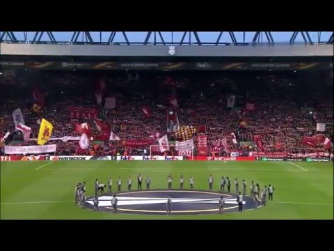 Dacă auzi versurile astea cântate la unison de zecile de mii de suporteri ai Liverpool-ului, simți cum orice altă senzație dispare, ca să facă loc imersiunii într-un corp colectiv, alimentat de energia corului. You’ll Never Walk Alone este probabil cel mai faimos imn oficial al unei echipe de fotbal. Fragmentul reinterpretat, rupt din spectacolul Carousel, montat pe Broadway de Richard Rodgers și Oscar Hammerstein II, a fost adoptat în prima jumătate a anilor 60 de suporterii lui Liverpool. Stadionul Anfield Road, unul dintre primele din lume dotate cu instalație de sunet, difuza piese din topurile vremii înaintea meciurilor. În 1963, o versiune cântată de Gerry and the Pacemakers a rămas pe locul I timp de patru săptămâni - piesa numărul 1 din topul săptămânii rula întotdeauna ultima la stadion, chiar înainte de lovitura de începere a meciului. Versurile, care vorbesc despre speranță în vremuri grele, au fost adoptate rapid de spectatori, în contextul sărăciei și suferinței de care încă se lovea Europa postbelică. Piesa a devenit în timp imnul clubului, cântată concomitent la stația stadionului și în tribune, înainte de fiecare meci acasă. Între timp, ea a prins la nivel global, începând cu Olanda, unde a fost adoptat de Feyenoord Roterdam și SC Cambuur, în Germania la Borussia Dortmund, FSV Mainz 05 și TSV 1860 Munich, în Spania la CD Lugo, și până în Japonia la FC Tokyo.