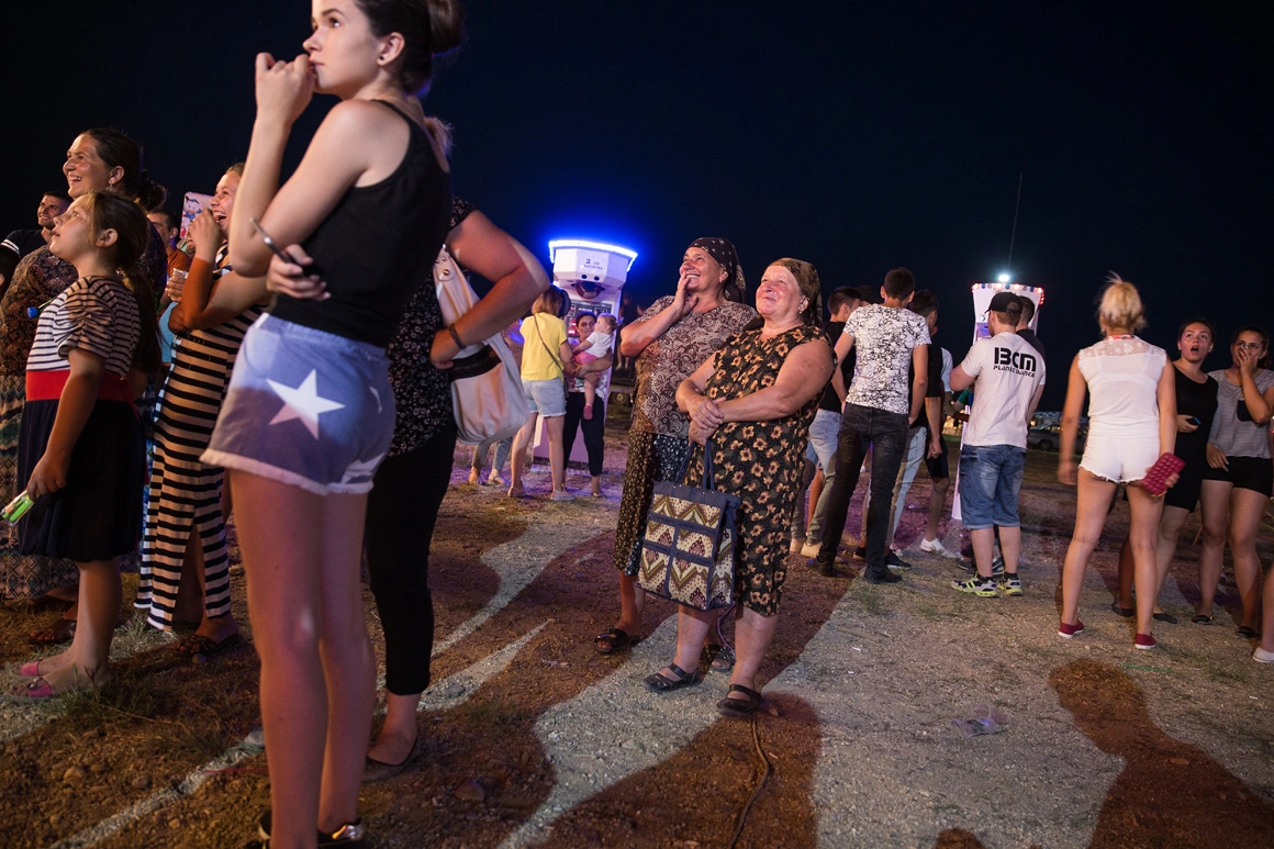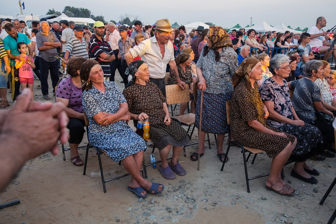 Stau destul de aproape una de alta, fără să se atingă, însă, privite de la distanţa mea, par un bloc unitar. Ai impresia că dacă una ar mișca un braţ aşa ar face toate. Dar ele stau, aşa, împreună, si se uită cuminte spre scenă, ca într-un cadru de acum treizeci de ani, doar că în faţa lor nu mai sunt activiştii de partid de la centru, ci aceeaşi ţesătură de artişti populari. Poliţia Locală le urmăreşte cu ochi ceţoşi-vigilenţi.