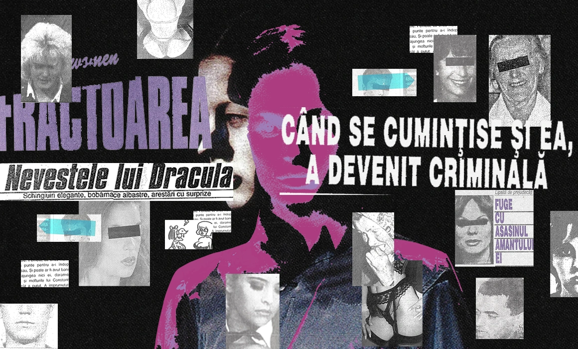 Am râs mult în redacție și ne-am dat seama că o astfel de presă pare greu de crezut azi, când sexul explicit s-a retras din ziare și reviste și s-a dezlănțuit pe nenumărate canale ale internetului. Am decis să facem un colaj cu astfel de artefacte ale presei anilor ‘90-2000, ca să înțelegem mai bine acel teritoriu sălbatic și uitat al presei românești proaspăt ieșite din comunism și cum erau reprezentate acolo femeile. Sunt născută în ’94, destul cât să-mi amintesc chioșcurile de la care-ți puteai cumpăra o gamă foarte variată de reviste cu femei dezbrăcate. În memoria mea sunt însă numere din Playboy și Hustler, nu din Infractoarea – un săptămânal azi obscur, dar care ani de zile a circulat în sute de mii de exemplare, poate cel mai bun exemplu al senzaționalismului nebun din presa post ’89. Azi, deși există multe derapaje media, discursuri misogine și hipersexualizare, titlurile din publicațiile de presă rămase sunt mai puțin aventuroase, lipsite de vulve și ejaculări.