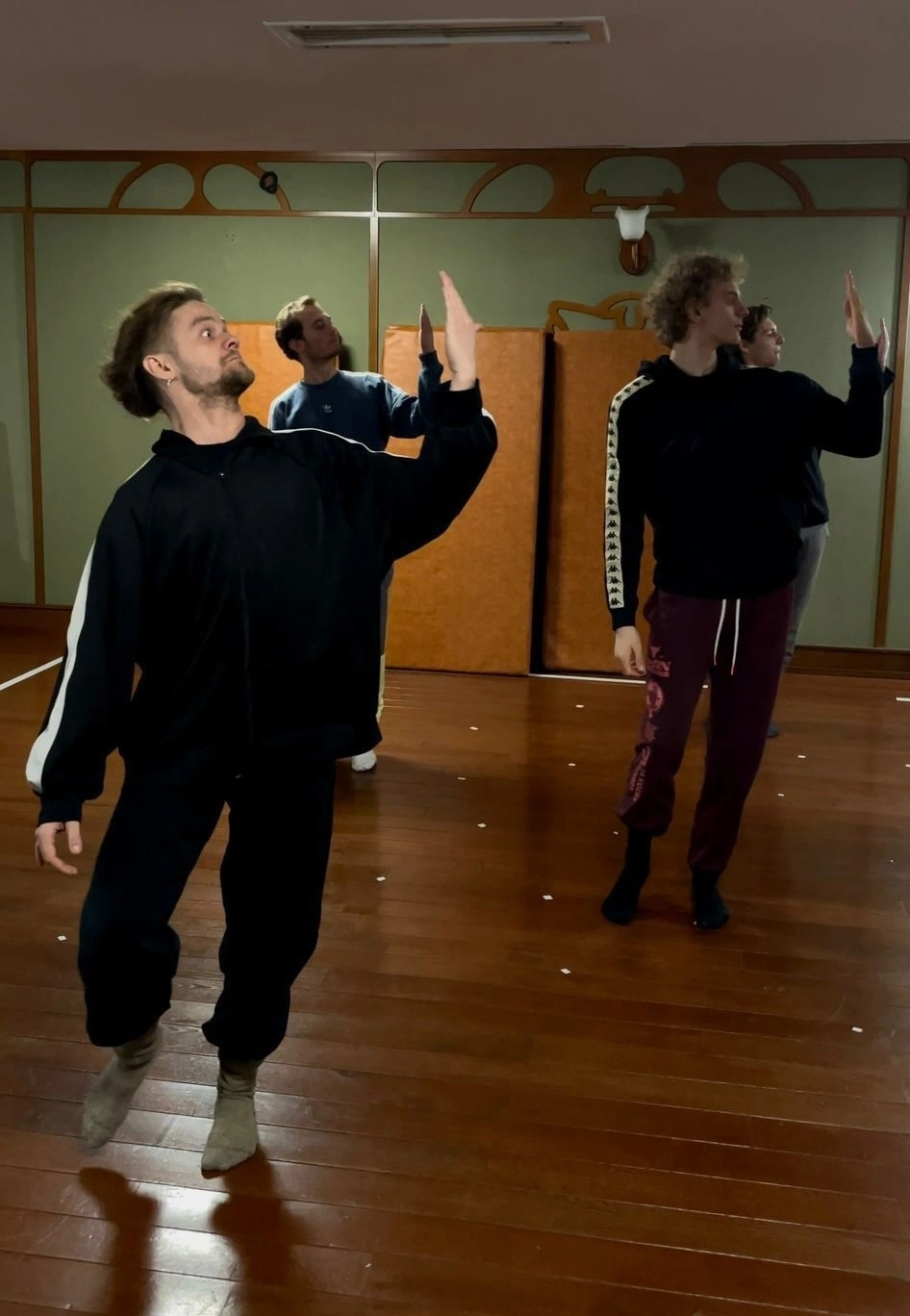 Andrei mi-a spus în linii mari ce momente coregrafice își dorește, dar, bineînțeles, anumite idei se nășteau pe moment, în timpul repetițiilor, din anumite impulsuri ale actorilor – propun și ei niște lucruri care nouă ne dau idei mai departe.