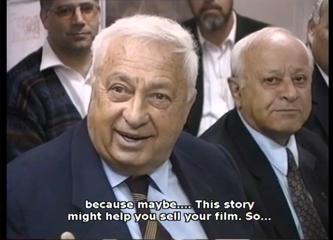 Apoi, când mi-am dat seama că filmul pe care voiam să-l fac eșuase, că nu-mi ieșise, că devenise un alt film – atunci a devenit un film despre un regizor. Despre eșecul regizorului. Despre carențele sale morale și etice. Despre cum regizorul ajunge să își piardă valorile. Așa că nu se putea fără mine. Fiindcă nu mai era un film despre Ariel Sharon, în care eu apăream pe margine, în colțul cadrului. Cadrul s-a mutat de la el la mine. Acela a fost punctul de plecare.