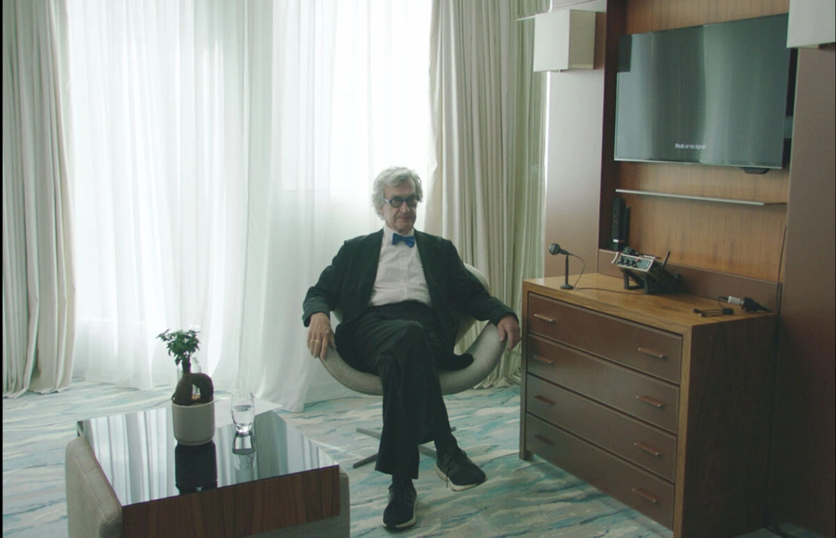 Când am gândit Camera 999, am descompus conceptul lui Wim: un om, o cameră, televizorul în spate, unii interacționează cu el sau nu, unora le sună telefonul și se întrerup, Wim intervine cu câteva edituri și gânduri proprii. Pentru mine, filmul meu și al lui Wim sunt și obiecte de istorie. Am decis să am aceeași încadrare, o cameră, cadru fix, accent pe fața omului. Când ești singur, te poziționezi în alt tip de relație cu limbajul, te confrunți cu tine însuți, nu ești condiționat. Toți regizorii trebuiau puși la același nivel, indiferent de carieră. Suntem aici să te ascultăm, le spune formula. Diferă doar ce spui, ce aleg eu și cum editez selecția. Importantă era construcția unui discurs. Oamenii sunt egali în cadru, îi vedem confruntându-și solitudinea în fața camerei. Televizorul a fost gândit și el, voiam să fie acolo. Și a ajuns să plutească în aer cu o liniaritate, ca o reflecție a perioadei noastre.
