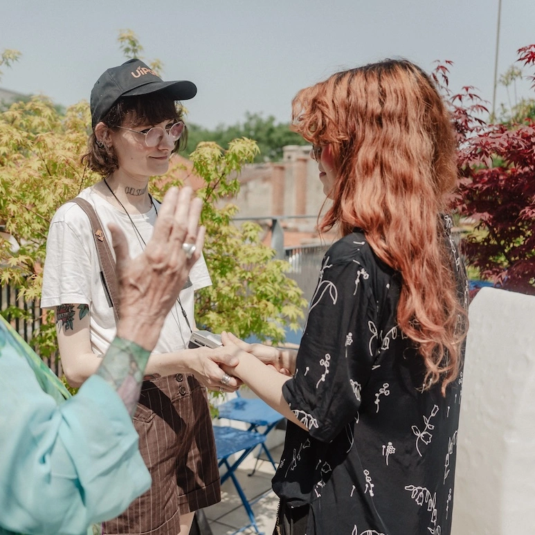 „Oriunde veți merge, această dragoste vă va fi alături. Sunteți fiecare jumătatea celeilalte.” Așa sună binecuvântarea pe care Diane Fisher, reverend, o dă unui cuplu de fete. Suntem în București, în dimineața zilei de 7 iunie – este ziua Pride-ului, marșul de celebrare a minorităților sexuale și de protest față de discriminarea la care încă sunt supuse. Fisher, femeie reverend și episcop în vârstă de 72 de ani, pensionară, de la biserica Comunității Metropolitane, ține o ceremonie de binecuvântare a cuplurilor de același sex.