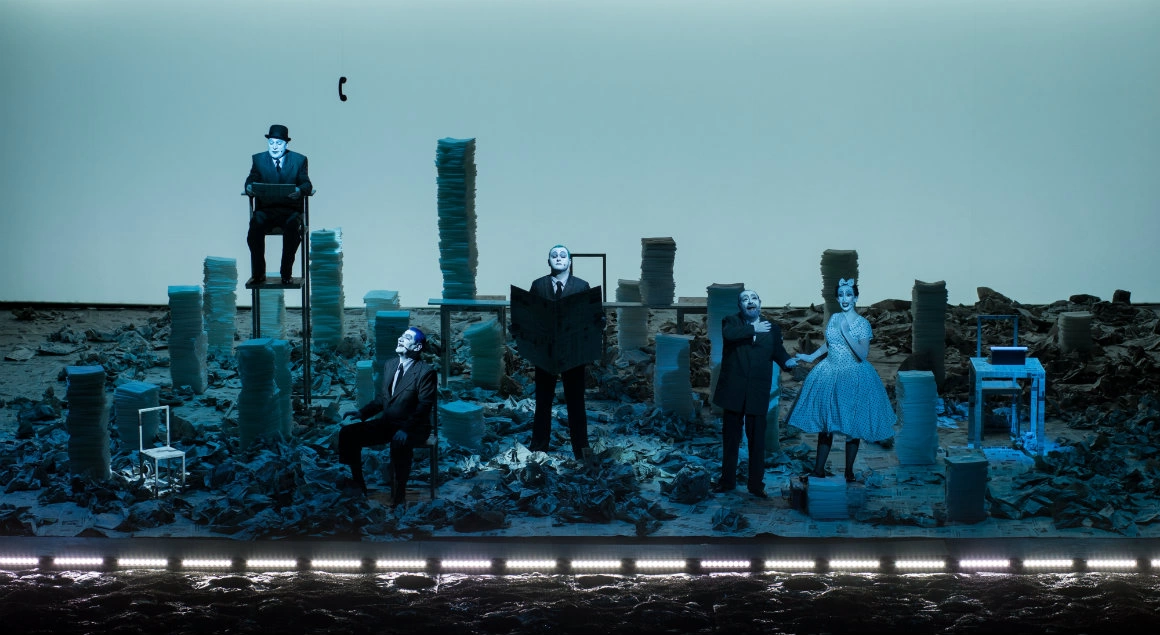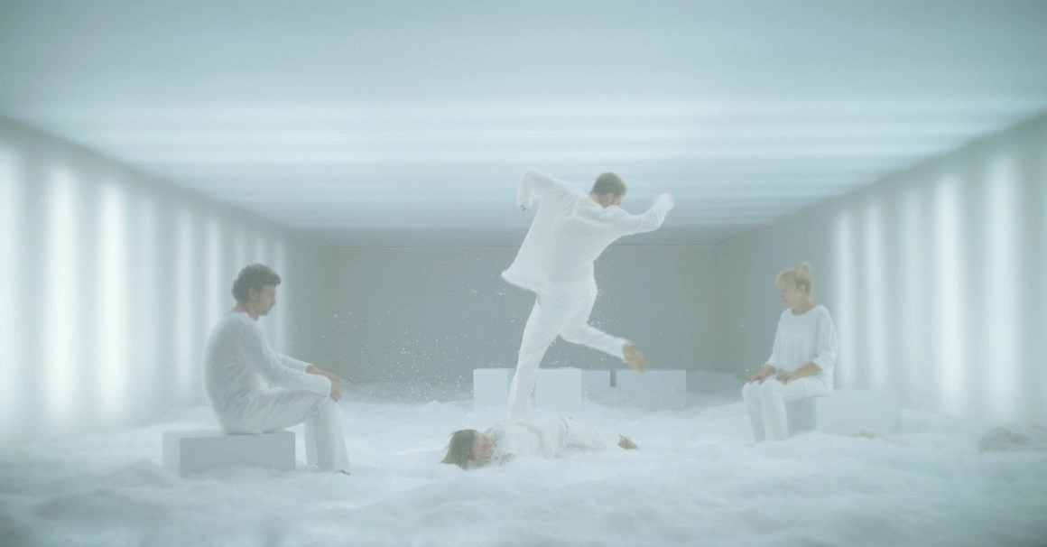 La Iarna, e abisal felul în care scrie Fosse, care nu pune semne de punctuație și îți aruncă pur și simplu cuvinte și te lasă să-l citești cum vrei. M-am speriat foarte tare când mi-a dat Măniuțiu textul, iar citind și tot citind, imaginea care m-a urmărit era a vapoarelor înzăpezite. Vapoare care rămân blocate în deșertul de gheață. Vedeam personajele exact ca pe vapoarele astea înzăpezite care se tot luptă să spargă gheața, dar ea se tot formează în jurul lor, până când își dau seama că this is it. Cumva, imaginea asta am încercat să o redau pe scenă. Pe de altă parte, m-a urmărit continuu senzația aia când ieși la ski și totul e așa de alb și de frumos în jur, doar că te înfricoșează că nu mai poți să ții ochii deschiși. E absolut superb, dar orbitor. Ca să redau direcțiile astea într-un spațiu, am eliminat orice lumină convențională și n-am mai folosit niciun proiector cu incandescență, care să provoace căldură. Am mers pe un cu totul alt tip de iluminat, ceea ce a schimbat radical percepția spectacolului. În rest, am încercat să creez ideea de tunel / cușcă albă, în care oamenii sunt închiși. Toți pereții sunt închiși; inclusiv al patrulea perete, prin care se uită publicul, e un tul care blurează imaginea, făcând-o mai puțin concretă.