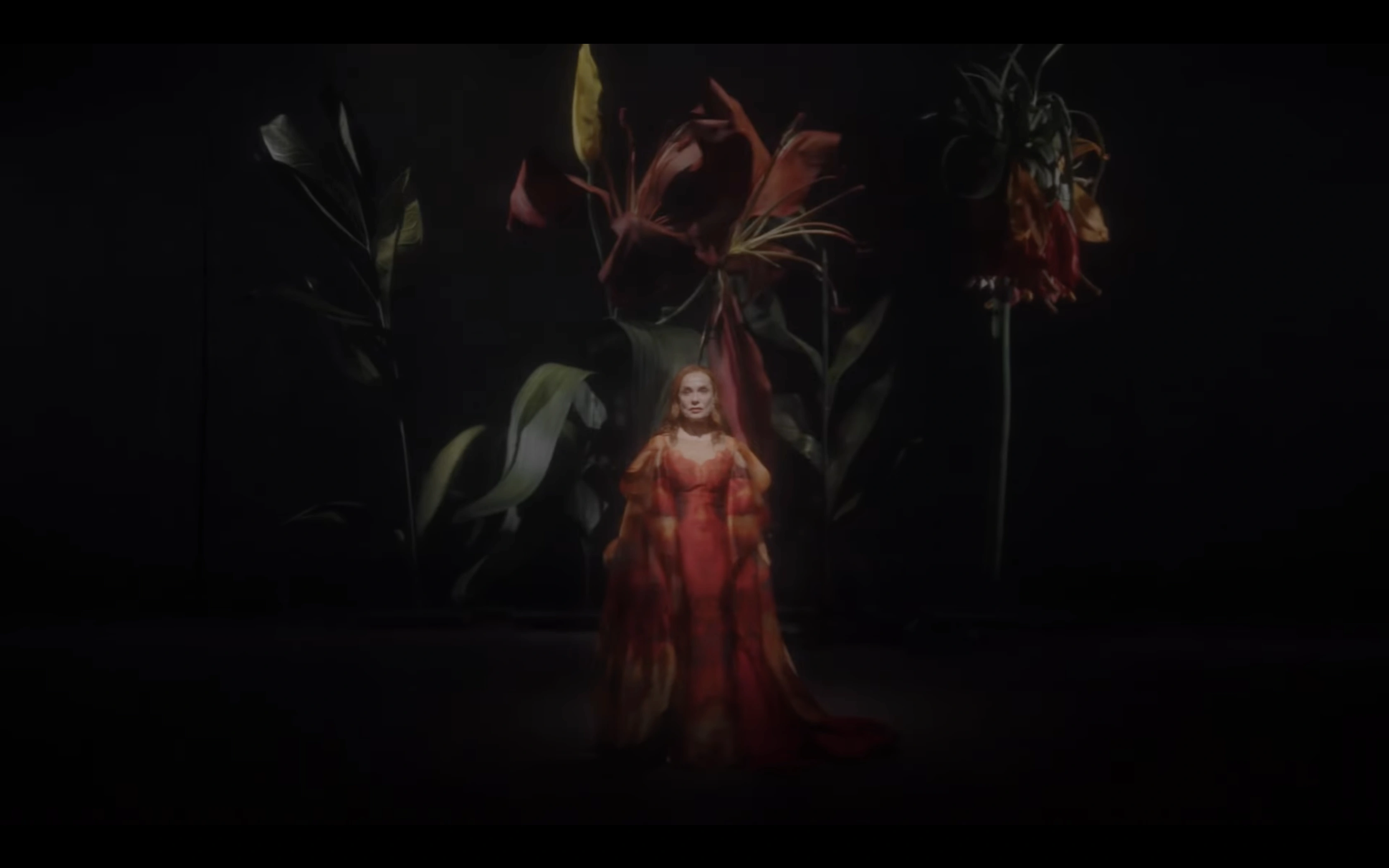 Spectacolul a fost, după cum era de așteptat, plin de efecte scenice compuse din asocieri despre care nu știai că ar fi posibile. Îmi vine în minte prezența unor butaforii, sculpturi în formă de flori gigantice, care se ofilesc treptat și cărora le cad petalele. Abia după ce m-am uitat la spectacol și online am putut fi sigur că erau hologramele unei randări. Totuși, deși toate efectele scenografice, sonore și coregrafice au atins multe puncte sensibile, întrucât Castellucci caută să stimuleze publicul într-un mod aproape somatic și de multe ori „pișcă” subconștientul, jocul lui Huppert, care e printre actrițele mele favorite – dacă nu chiar favorita –, nu mă atingea. Între public și scenă se afla o cortină translucidă, care amplifica anumite efecte, dar care crea pe undeva și un blocaj. Însă, către final, acea cortină s-a îndepărtat, iar actrița a urlat repetat, în moduri tot mai deconstruite: Ne me regarde pas! Brusc, prezența ei a început să devină tot mai reală. Ba mai mult, am resimțit magnetismul expresiilor ei faciale, care mereu m-a ținut acolo, cu ea, abia în momentul aplauzelor.