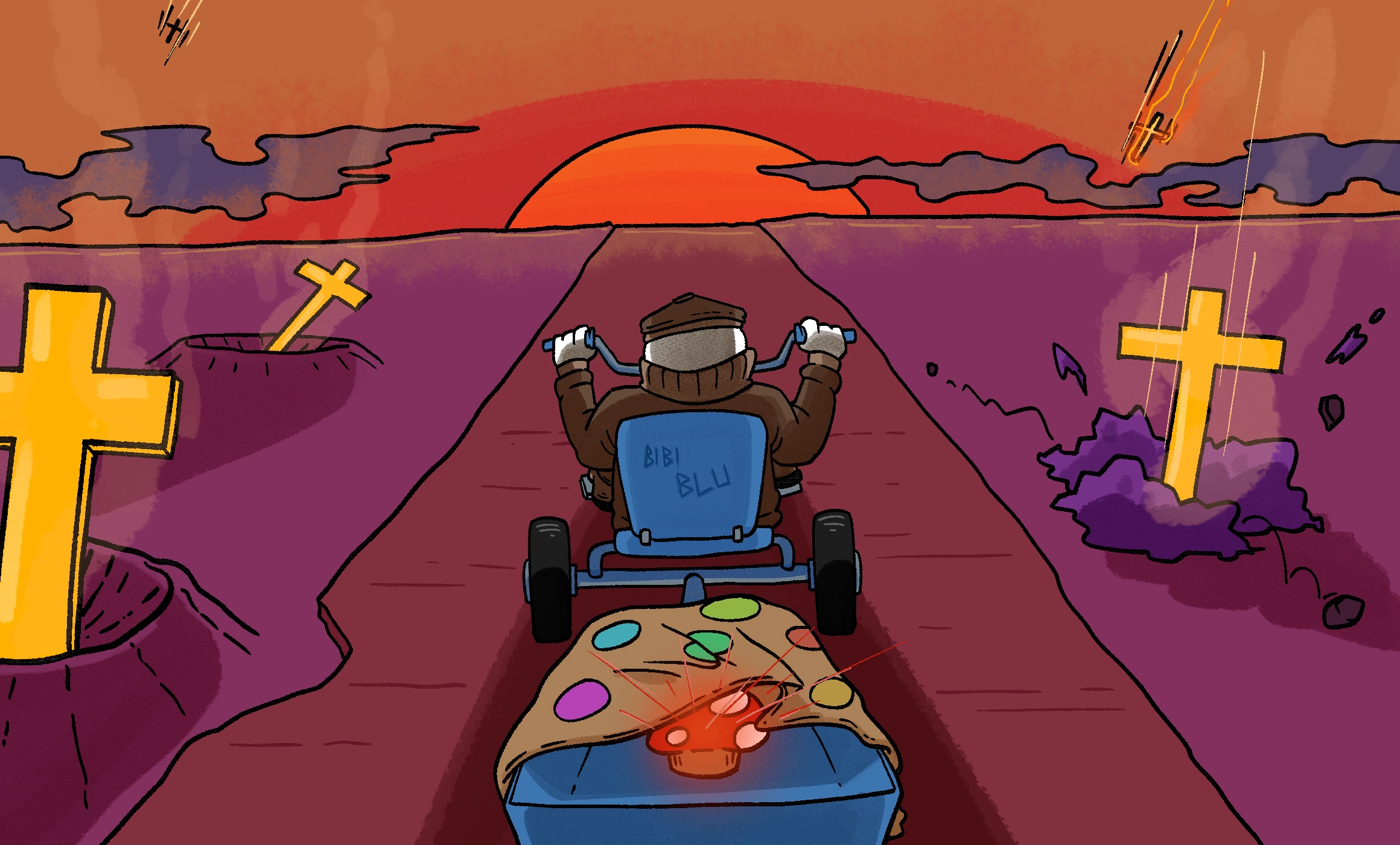 Soarele apunea. O explozie. Soarele răsărea. Altă explozie. Zilele treceau. Revoluția noastră era să privim orizontul și să-i făcem cu mâna lui Bibi Blu.