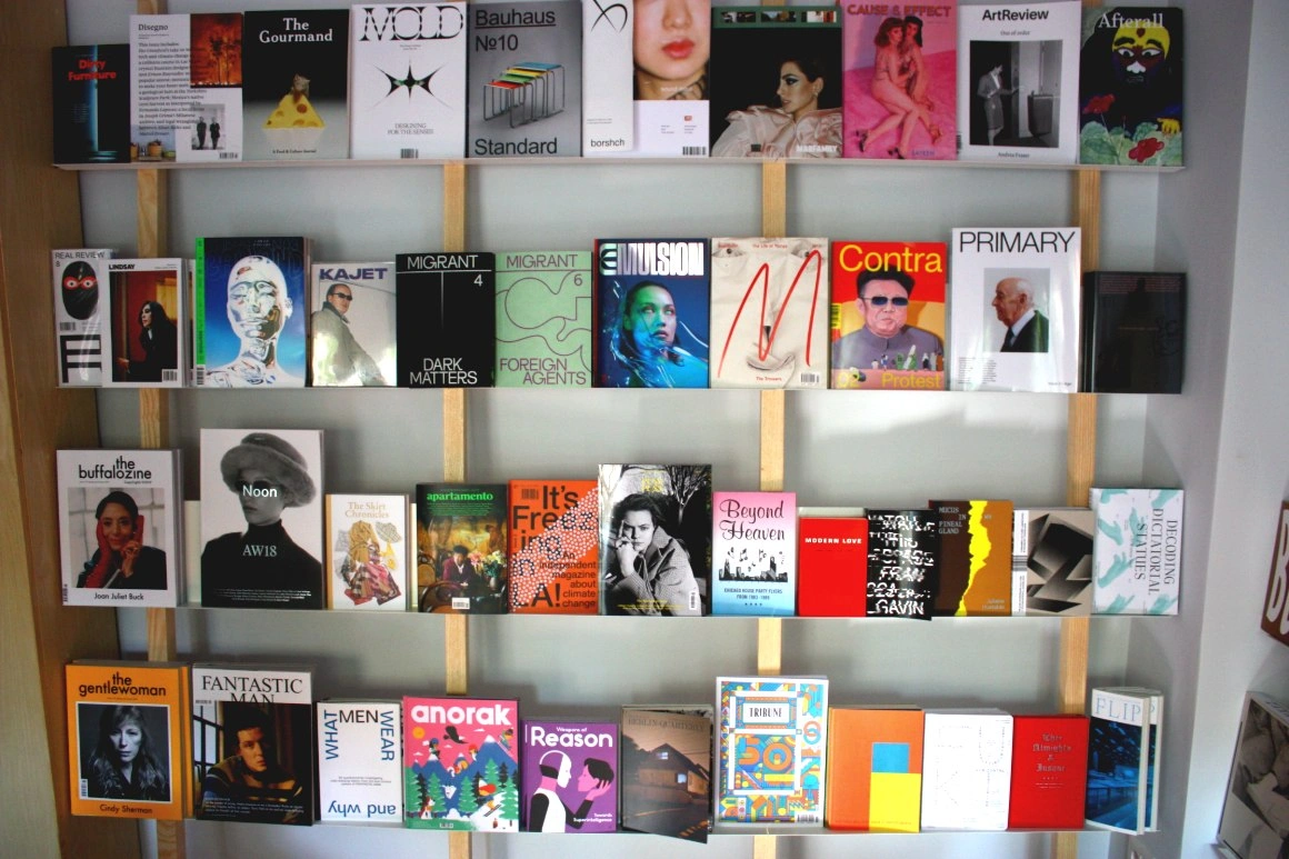 Petrică: E ca o pastilă în timp, nu? O capsulă de informații. Mie mi se pare că în România e nevoie de un proces de educare a publicului, pentru că, din ce am văzut de la oamenii care au venit până acum la noi, au fost în principal atrași de colțul cu cărți, mai mult decât de reviste. Pentru noi, sunt anumite publicații clasice, cum ar fi Gentlewoman, Fantastic Man, din care, într-o librărie de reviste din străinătate, ar trebui să dai jumătate din stoc. Aici e în continuare cartea. Pare că mă plâng că se vând cărțile, nu? (Râdem.)