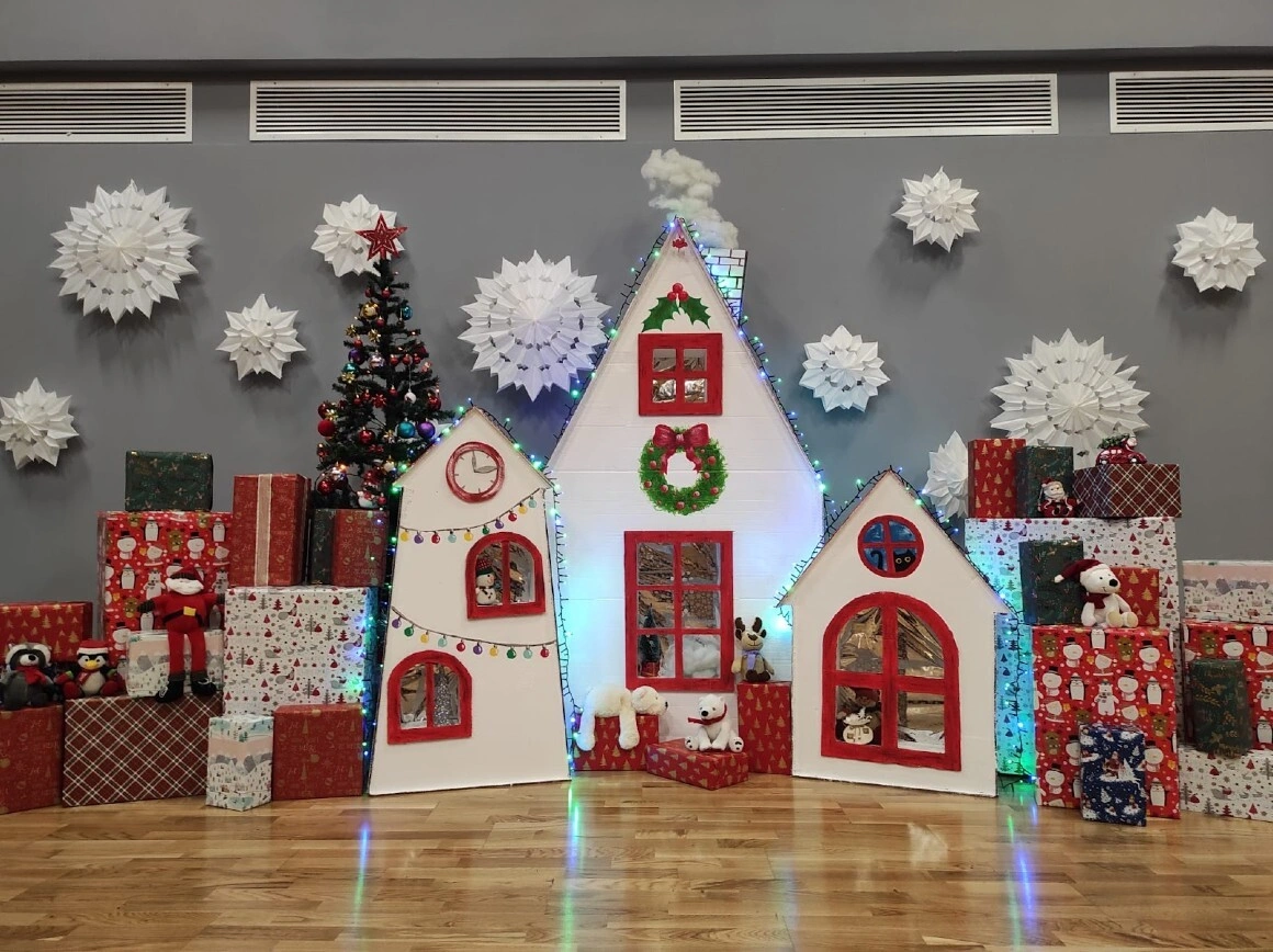 De Moș Nicolae, la marginea Brașovului a început să ningă cu fulgi mari de hârtie. În sala de conferințe a unui spațiu de birouri reconvertit în centru de refugiați s-a ridicat un orășel de poveste - cu brazi și reni, cu luminițe colorate, turtă dulce și cadouri. Copiii care îl așteaptă pe Moș sunt împodobiți și ei, la fiecare mișcare se aude clinchet de zurgălăi.