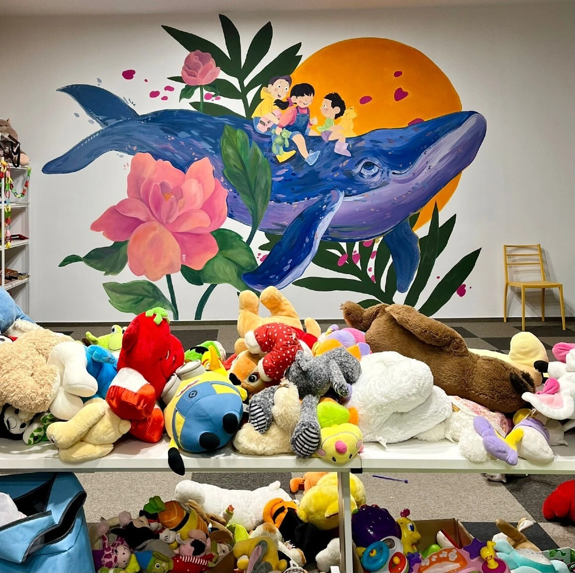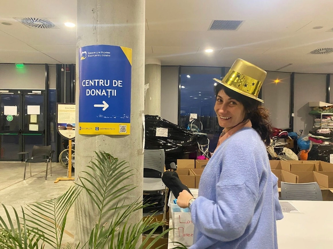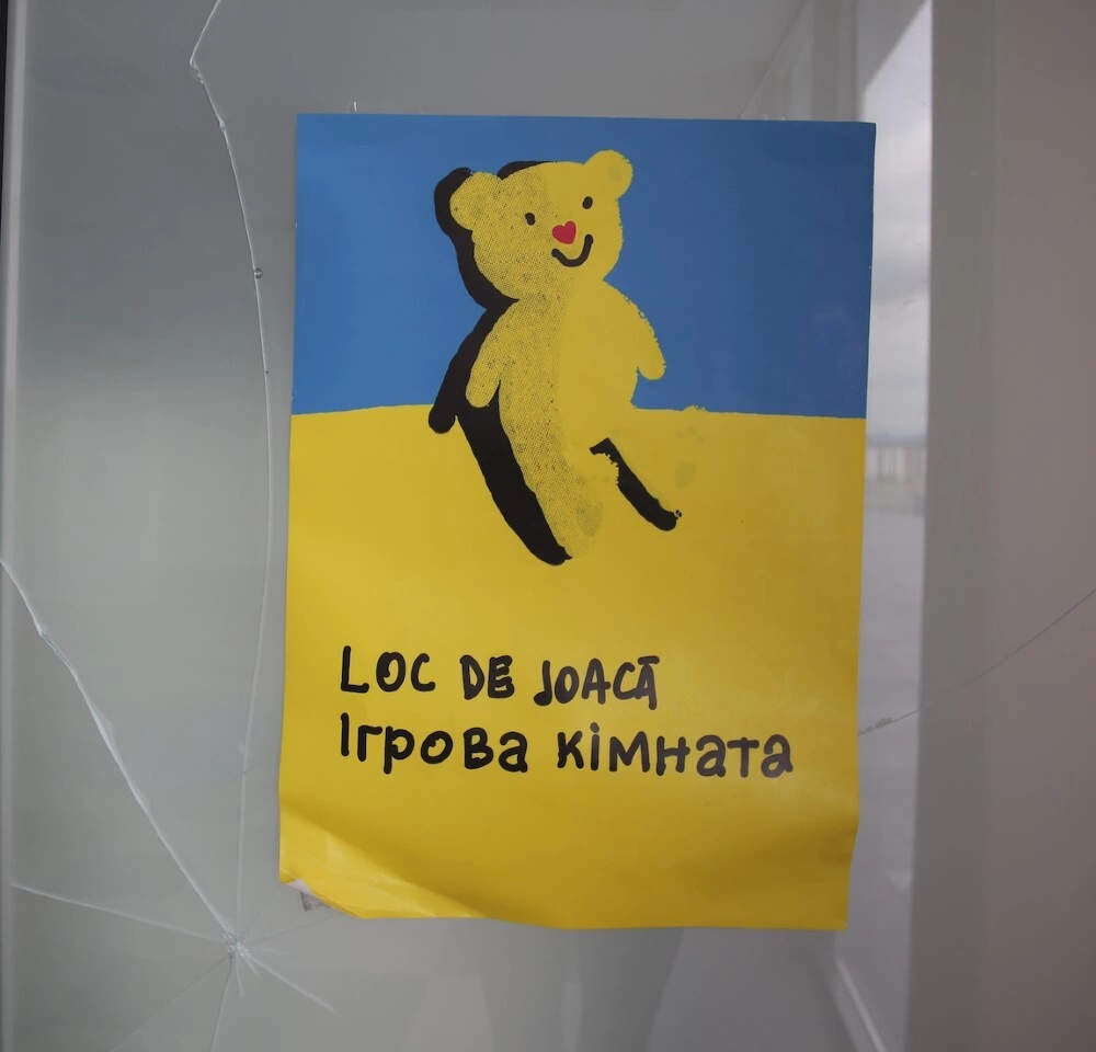 Alături de mai multe organizații printre care Librăria Cărturești, Grădinița Heidi, Skirtbike Brașov, Asociația Happy Moms și zeci de liceeni, am amenajat o cameră care să fie un colțișor colorat și vesel pentru Mama și copilul. Ca să marcăm spațiul, artistul George Roșu a făcut un afiș în culorile Ucrainei cu un ursuleț de pluș. Voluntarii au adus desene ale copiilor lor ca să decoreze pereții, librarii au adus cărți și decorațiuni. Apoi au venit jucăriile. Saci peste saci. Sortam cu orele și când reușeam să le așezăm cât de cât mai veneau niște saci.