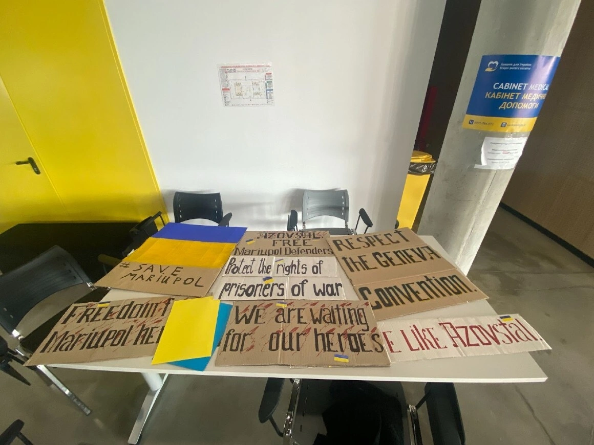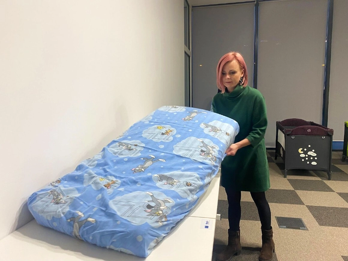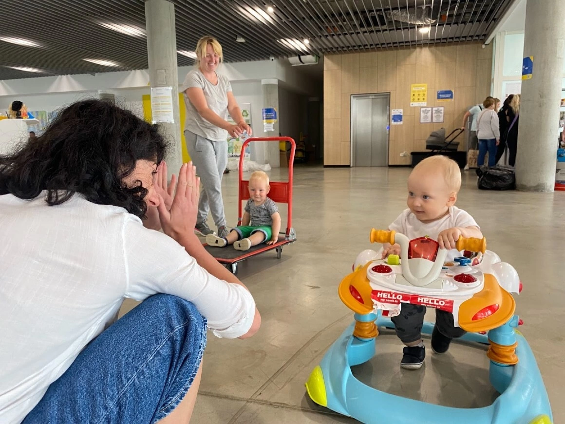 Alături de mai multe organizații printre care Librăria Cărturești, Grădinița Heidi, Skirtbike Brașov, Asociația Happy Moms și zeci de liceeni, am amenajat o cameră care să fie un colțișor colorat și vesel pentru Mama și copilul. Ca să marcăm spațiul, artistul George Roșu a făcut un afiș în culorile Ucrainei cu un ursuleț de pluș. Voluntarii au adus desene ale copiilor lor ca să decoreze pereții, librarii au adus cărți și decorațiuni. Apoi au venit jucăriile. Saci peste saci. Sortam cu orele și când reușeam să le așezăm cât de cât mai veneau niște saci.