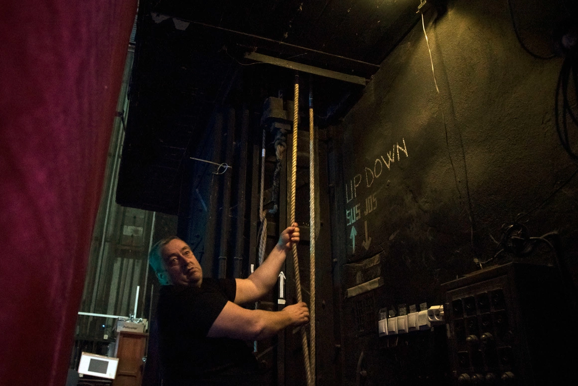 MAȘINIȘTI. Brațele care manevrează rapid decorurile prin sisteme de scripeți și contra-greutăți: la Odeon, o schimbare de decor poate dura și 15-20 de secunde. Primii mașiniști erau marinari ieșiți la pensie, care erau obișnuiți să tragă de frânghii. De altfel, în limba engleză, mai toate denumirile tehnice din domeniul spectacolelor vin de pe nave.