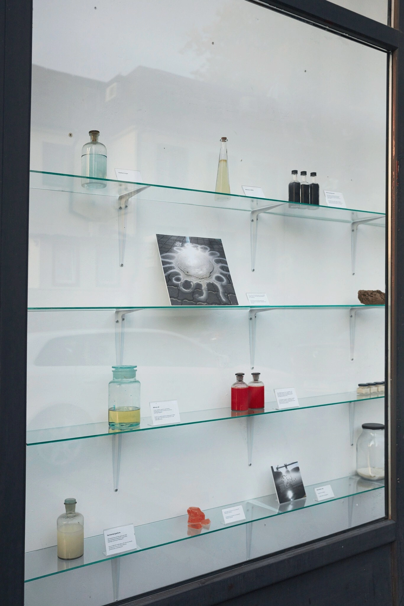 În ceea ce privește rezultatele solide ale procesului de distilare, în vitrină avem prezent: Overthink ore (reziduu găsit în adâncul tău dacă sapi suficient), Haunted house debris (reziduu patriarhal conținut în imaginarul horror comun, ce se găsește adunat pe străzi și trebuie colectat pentru a nu se împrăștia), Corrosive dream in a jar (pulbere obținută din scrijelirea suprafețelor coșmarurilor) Anxiety ash, Crystalized silence, Solidified sigh (forma solidă pe care au prins-o oftaturile, după repetarea de 4 până la 5 milioane de ori a gestului, din cauza aceluiași motiv), Glowcore (trinket în formă de inimă ce te face să strălucești când ești în pericol, asemenea bacteriilor bioluminiscente, care acum se asociază cu tine).