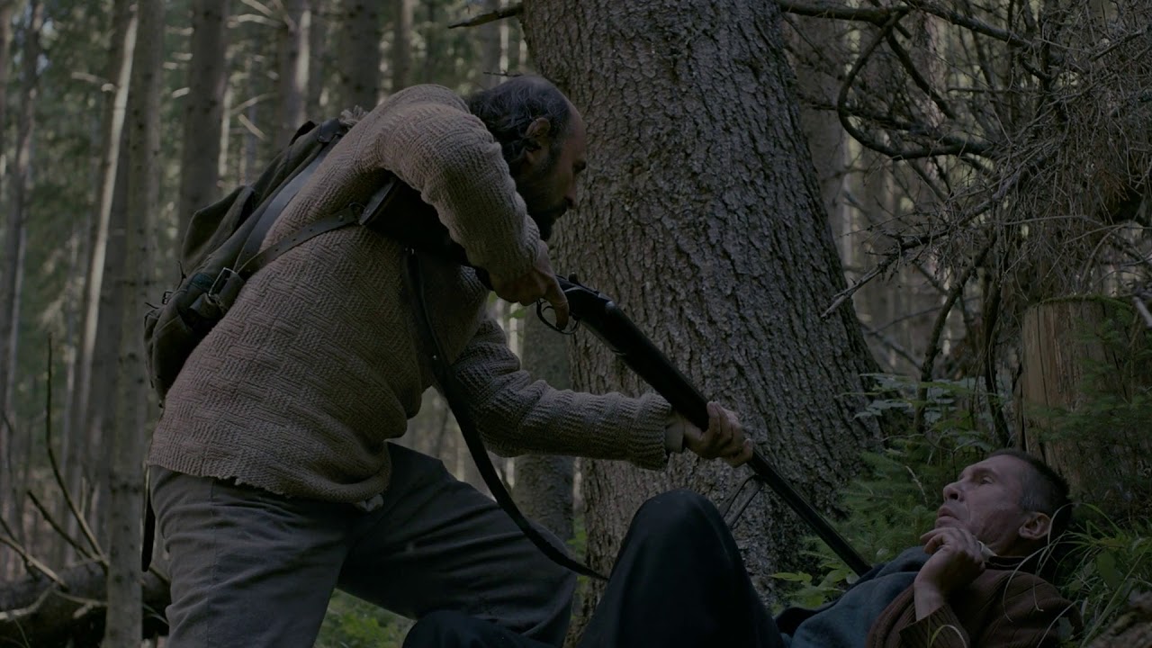 Andriuță (starețul din După dealuri) e aici un pădurar care trăiește, undeva în Piatra Craiului, aproape fără legături cu societatea, fără alți companioni în afară de un măgar și un câine. E atât de ursuz încât nici nu i-a dat câinelui un nume. Treptat aflăm că a trăit cândva la oraș. Ceea ce nu aflăm cu precizie este când anume s-ar petrece toate astea – dacă ar trebui să ghicesc, aș spune că în prima jumătate a secolului XX, dar, cu un indiciu sau două în plus sau în minus, ar cam putea fi oricând în ultimii 100 de ani și mai bine. Patrulând prin sălbăticie, pădurarul găsește o femeie (Cosmina Stratan) zăcând inconștientă, cu nasul spart; pare să fi fost violată. O ia la el la cabană și o îngrijește. Noaptea, el stă cu ochii deschiși, culcat pe ceea ce pare a fi o blană de urs, la picioarele patului în care ea se zvârcolește. Când femeia începe să se înzdrăvenească, statutul ei în casa pădurarului devine ambiguu: are ceva dintr-o prizonieră, dar și dintr-o persoană care n-ar vrea să fie nicăieri altundeva, căci n-are unde să meargă. Filmul (cel de-al treilea lungmetraj regizat de Florin Șerban, după succesul lui de la Berlinala 2010, Eu când vreau să fluier, fluier, și după Box, din 2015) e despre cum se apropie cei doi unul de altul – proces în care cuvintele (răzlețe) contează mai puțin decât trosnetele amplificate ale focului.