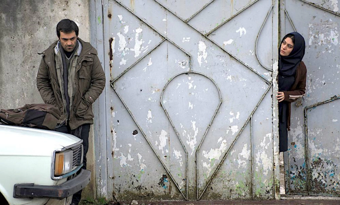 Reza nu numai că se îndepărtează în felul ăsta de familie (Hadis încearcă din răsputeri să îl ajute, fiul lui e curând prins și el în tot felul de probleme la școală), dar își formează un fel de refugiu masculin din care nu mai iese. E văzut de multe ori singur, cu spatele la cameră, într-o tăcere bolnăvicioasă - în fața dușului, într-o peșteră îndepărtată unde bea o licoare distilată sau în fața multor porți înalte pe care tot așteaptă să se deschidă (o aluzie la opacitatea și răceala kafkiană a sistemului, care-și umilește permanent cetățenii). Momentele sale de singurătate contrastează cu estetica austeră a filmului (destul de sec și monocrom, văzut în tonuri reci și cadre largi), dând deseori impresia că ele sunt o proiecție subiectivă (sau poate onirică?) a protagonistului, în încadraturi simetrice și căutat poetice.