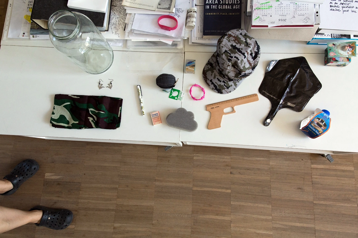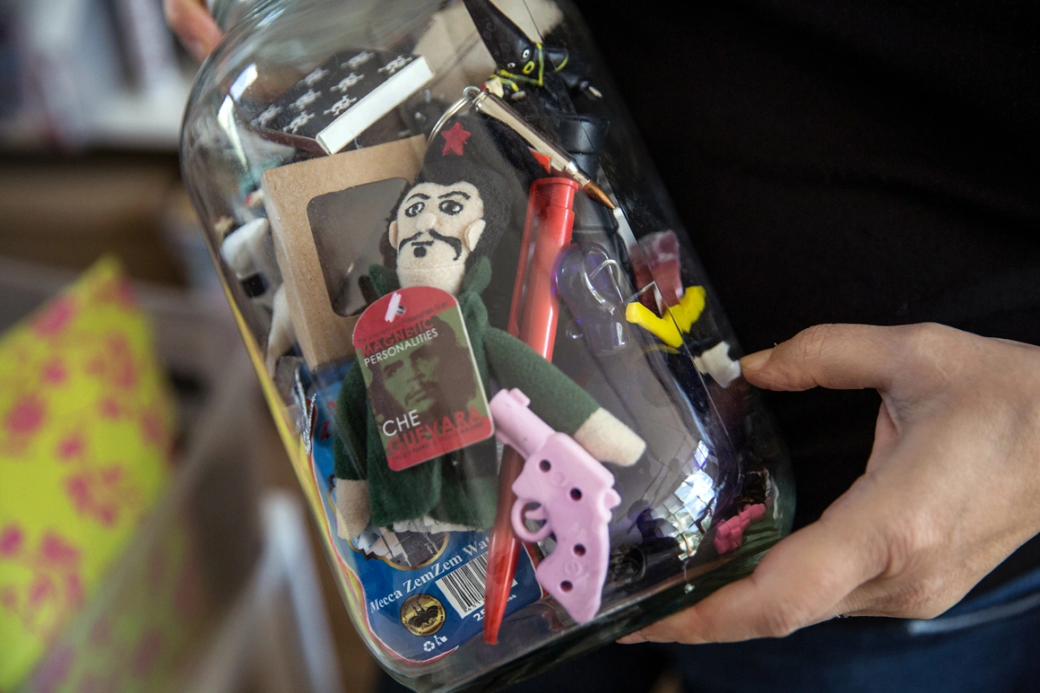 „Context” e unul dintre cuvintele pe care Lia le folosește foarte des, iar arta ei ilustrează profund înseamnă acest cuvânt. Nu doar despre ce presupune să fii artist din estul Europei sau sau cetățean într-o societate în tranziție, ci ce presupune să fii un colocatar al planetei. Așa că, după Arhiva de Artă Contemporană, a creat un Centru de Analiză, iar de la finalul anilor ’90, a început să colecționeze primele obiecte din ceea ce avea să devină Muzeul Cunoașterii, lucrarea care a ajuns să-i ocupe azi mare parte din casă și din care se desprind multe din expozițiile ei. „Primul obiect care era din altă direcție a fost o umbrelă cu stele - am cumpărat-o în Italia, la Palazzo Grassi, unde era o expoziție despre cosmos în secolul 19”. Acum, umbrela aia e ruptă și stă cuminte într-o colecție mai mare de umbrele. În altă călătorie, a găsit un glob pământesc cu picioare și așa s-a apucat să facă o colecție de globuri, inclusă acum la departamentul Pământ al Muzeului. Globurile astea erau pentru ea „un instrument serios de călătorii imaginare”, dar și-un simbol foarte bun pentru toată pofta cu care voia să înghită toată cunoașterea pământului. În cei aproape 20 de ani de când construiește, bucată cu bucată, instituția do it yourself a muzeului, au apărut celelalte șase departamente miniaturale, din cărți, jucării și suvenire alese strategic. Borcanele cu creioane, de altfel, nu sunt doar un inventar cu obiecte de scris, ci un inventar al imaginarului nostru de pământeni ai lui 2017. Un creion cu Isus stă lângă un pix cu cap de extraterestru și lângă ele, unele cu figurine Disney. La fel ca-n malaxorul de informații din care ne luăm doza aproape non-stop.