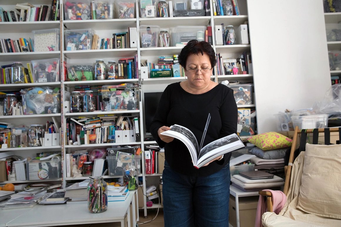 Când am intrat pentru prima oară în casa Liei și a lui Dan Perjovschi, mi-am adus aminte de un vis în care se făcea că am rămas peste noapte într-un muzeu. În sfârșit, aveam timp să mă uit și să răsfoiesc pe îndelete, iar până dimineața, când au revenit paznicii, mă simțeam deja ca acasă, între maldăre de cărți și obiecte care făceau ca lumea să pară mult mai limpede. În casa cu tavane foarte înalte, unde locuiesc amândoi de mai bine de cinci ani, visul Liei de a înțelege mai mult, dar mai ales de a sistematiza înțelegerea asta, prin hărți, diagrame și timeline-uri, ia forma unor rafturi care acoperă de sus și până jos pereții albi. Mii de cărți și mii de obiecte stau atât de aproape unele în altele, încât ai zice că-s toate un corp comun. Unul care ține la un loc toate semnele și vestigiile adunate într-o viață de cunoaștere. Cartea din care-ai aflat că Alan Turing a murit mâncând un măr înmuiat în cianură, cartea în care-ai înțeles de ce dadaiștii făceau muzică din răpăitul mitralierelor, revista în care-ai citit prima oară despre unii care spun că trăim în postmodernism, cartea aia de sociologie, care te-a trimis la sute de alte cărți, unele despre gene și celule, altele despre credințele supranaturale ale unor triburi izolate. O umbrelă cu planete desenate, un breloc cu un Beethoven miniatural de plastic, o jucărie ediție limitată de la Lego, cu un detector de mine antipersonal, un recipient transparent cu apă în care plutesc stâlpi, mașini și oameni miniaturali, care-ar putea să fie reminder al unui tsunami de jucărie.