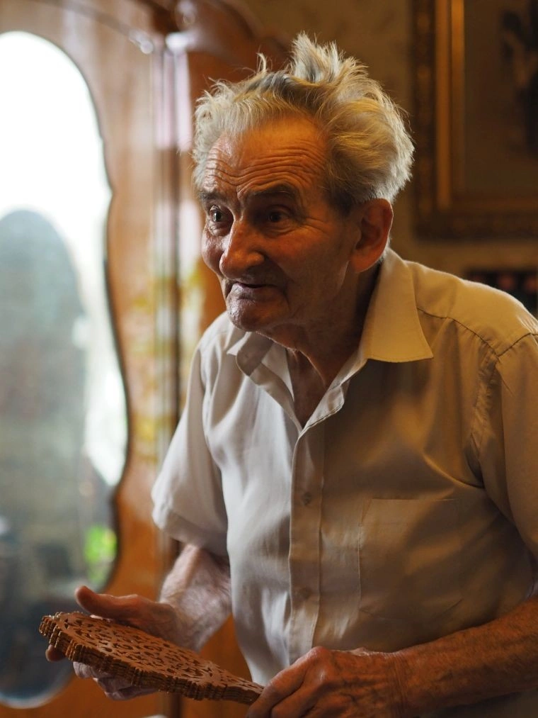 Ce e mișto la el e pofta de viață pe care o emană - ca un shot tonic - și firescul cu care-și asumă efemerul, nu-ți cere să-l compătimești. Îți dă speranța că viața are mereu sens, că orice gol poate fi umplut. Când ne-am văzut, l-am rugat să ne spună mai mult despre el, ca să știți mai bine cine e când mergeți să vedeți filmul. Ne-a povestit cum își construia singur jucăriile când era mic, cum a mers cu tatăl lui 80 de kilometri pe jos după ce a început războiul sau cum și-a organizat întreaga viață după ce și-a luat diploma. Am combinat răspunsurile cu ce-a mai zis la Q&A.