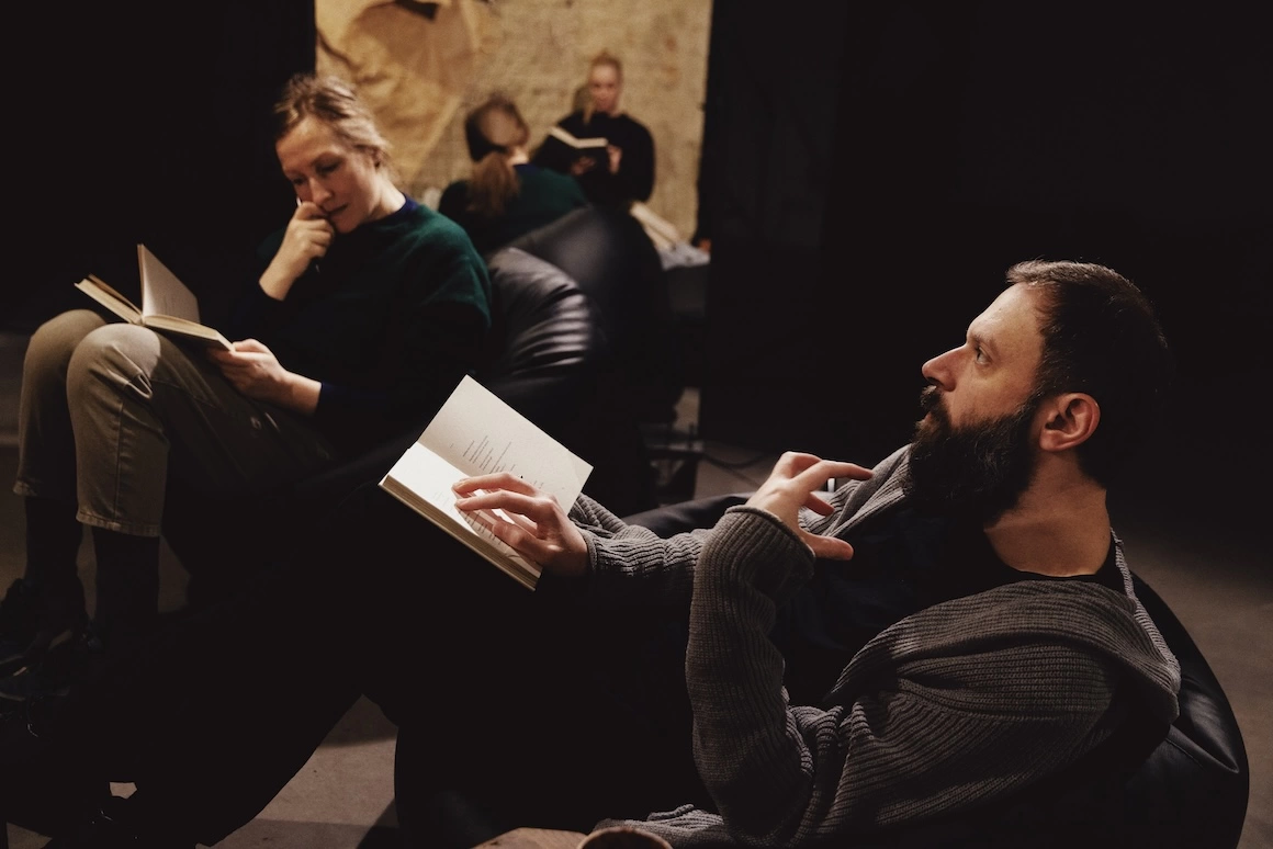 Suntem în atelierul artistei multimedia Victoria Viprada din Chișinău: o încăpere post-industrială, reparată și mobilată ca-n reviste de design, cu nuanțe dominante de bej, alb și negru, și fotolii muștar, în clădirea de altfel precară a tipografiei Universul din oraș – spațiu construit în anii ‘60, care ar urma să fie restaurat și transformat în centru cultural contemporan de autorități într-un proiect controversat. Victoria ne oferă ceaiuri exotice și începem lectura odată ce ne strângem cu toți cei care pot veni azi la cercul de română – moderatorul clubului, Alex Cosmescu, poet și filosof, Iulia Piliughina, designer grafic și ingineră urbanistă, Alexandra Soșnicova, artistă de dans contemporan, Elena Pani Turceac, care se prezintă drept mamă casnică, dar e contrazisă de ceilalți, care îmi spun că e artistă plastică.