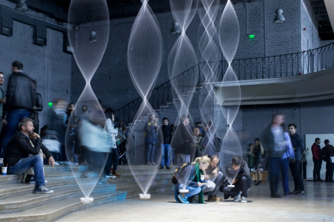 Nu în ultimul rând, expoziția asta reușește să traducă în forme vizuale și în obiecte artistice interactive câteva elemente și principiile cele mai greu de internalizat pentru un consumator obișnuit de internet, radio & TV, tocmai fiindcă sunt așa de abstracte, încât tehnologiile care le folosesc pentru a capta și transmite informație seamănă, în ochii profanilor, cu magia. După vernisaj, m-am oprit în fața unei instalații fără să citesc explicațiile și-am încercat să mă dumiresc singură la ce asistam. În fața mea, pe luciul unui ochi de apă închisă la culoare (fiindcă era amestecată cu cerneală, după cum aveam să aflu), apăreau ca din senin mici „împunsături”; ca și când cineva sau ceva ar fi aruncat în apă cu pietricele microscopice. „A, păi astea sunt radiații de la stele”, mi-a eplicat Paul Popescu, pe un ton degajat, de parcă mi-ar fi vorbit de niște obiecte oarecare, găsite în vreo debara. Când a deschis cutia cu fire și senzori atașată ochiului de apă, mi-am dat seama că la mijloc nu era nicio metaforă. Într-un fel pe care nu l-am înțeles pe deplin, ci pe care mai degrabă l-am acceptat, așa cum accept teorii despre quarci și găuri negre când mă uit la vreun documentar despre știință, instalația Cosmic Soup reușește să capteze radiații din cele mai îndepărtate colțuri ale galaxiei și să le facă vizibile. O altă lucrare, SF intitulată RF278, creează vizualizări ale undelor emise de smartphone-urile și tabletele pe care le purtăm după noi - dacă te apropii de ecranul cu senzori de lumină și, să zicem, îți sună telefonul, vezi o intensificare a emisiei de unde care, altminteri, ar fi fost doar unul din infinitele spectacole invizibile pe care legile fizicii le dictează subtil în jurul nostru. În plină ascensiune a lui homo conectatus, e necesar să înțelegem cum și la ce suntem conectați, ce rol performăm cu fiecare clic și cum contribuim în felul ăsta la uriașa rețea globală, devenind noduri. Iar pentru neinițiați într-ale științei, așa ca mine, arta poate fi un mediu foarte bun ca să facă vizibile, dacă nu explicite, unele întâmplări din realitatea (i)mediată.