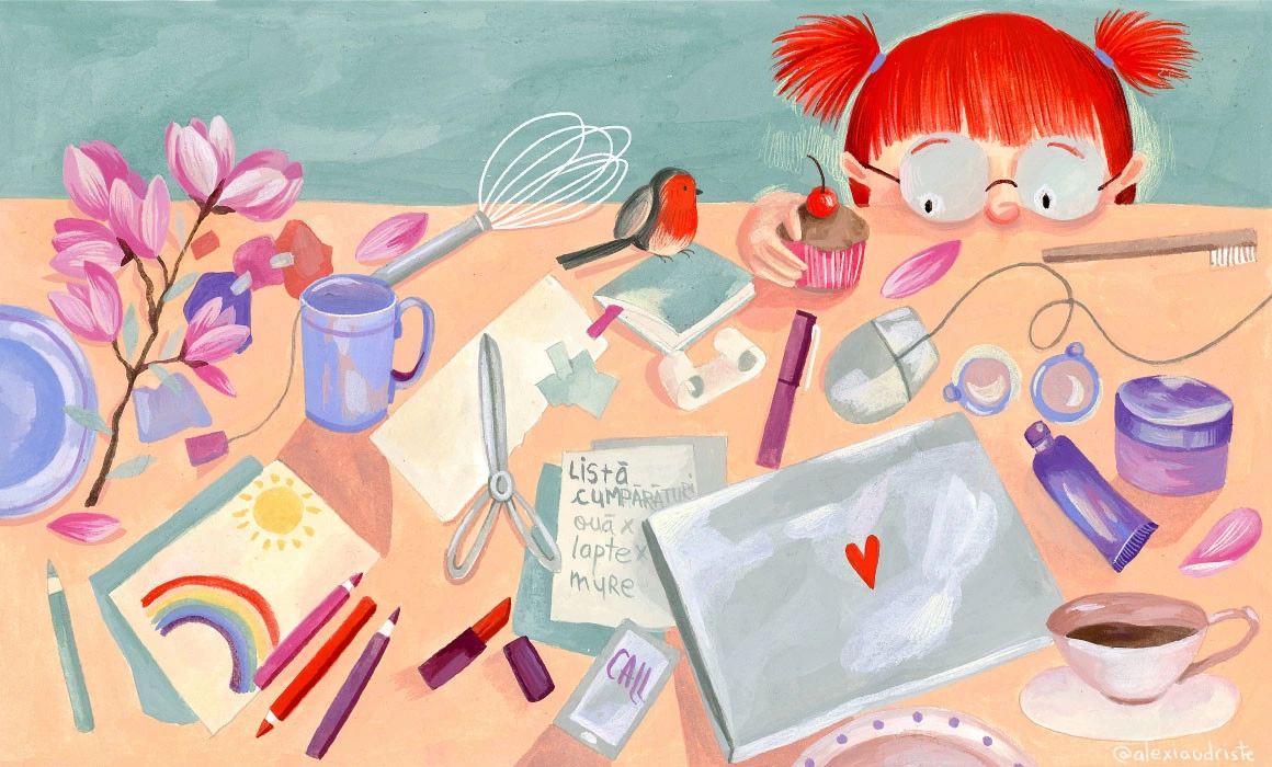 Principala problemă pe care o văd eu în petrecerea timpului acasă cu copiii este organizarea unui program coerent. Adică și dacă avem activități pe care le putem face, și dacă primesc teme pe net de la profesori/învățători, problema este că acasă ai tendința de a face lucrurile mult mai dezlânat. E mult mai greu să-i motivezi să stea concentrați la teme jumătate de oră sau o oră, mai ales când auzi replica „mami, mai avem o lună și jumătate de stat acasă, ne lași?”. În plus, nu știu alte mame, dar eu am adesea dileme din astea de genul: o las să picteze patru ore la un cățel pe care și-l face singură pe husa de telefon sau o opresc, să mai facă și niște triunghiuri congruente la mate?