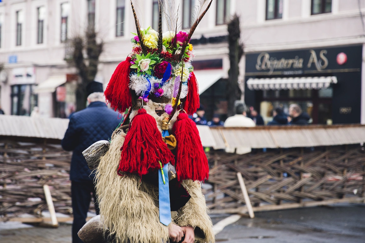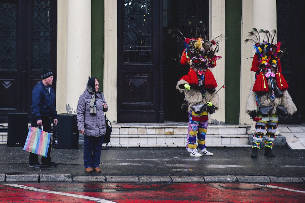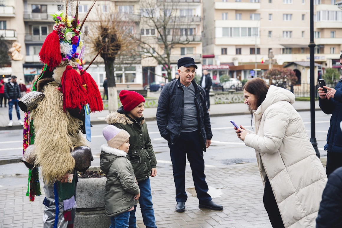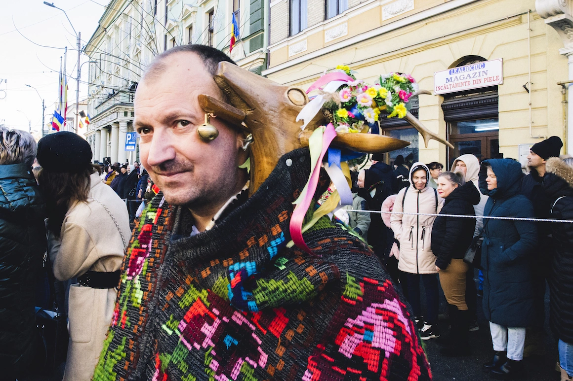Mai din inimă, mai din statut social, mândria s-a simțit mult la paradă. În discursurile oficialilor, în urările colindătorilor, în deschiderea la poze și discuții despre costume și sate de baștină. Dar momentul meu preferat din zi a avut loc înaintea paradei. În timp ce vorbeam cu Ivanciuc despre costumul de drac, brusc s-a oprit și mi-a zis: „Hai să vezi ceva cu adevărat frumos!”, apoi a luat-o la fugă până pe strada opusă. Într-un car tras de cai, un grup de tineri în costum popular colindau, râdeau și chiuiau.