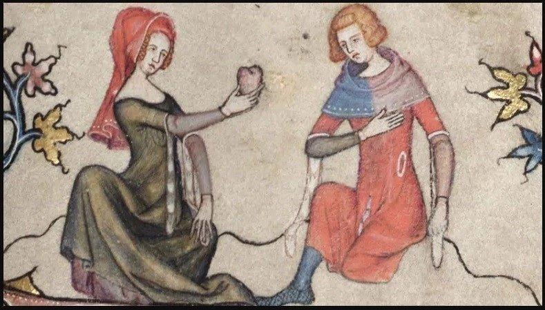 În cea dintâi, Marilyn Yalom spune povestea complicată a „inventării iubirii” de către francezi. Totul a început la începutul secolului al XII-lea, cu trubadurii din sudul Franței, care vorbeau limba occitană, îmi scrie cercetătoarea. Aceștia s-au răspândit în spre nord, la curțile regionale, unde se vorbea și se scria franceza veche. „Iubirea la curte cerea bărbatului care iubește să-și dea cu legământ inima doamnei sale alese și să-i rămână credincios pe viață. Pentru prima dată în istoria occidentală, doamnei i se încredința puterea supremă în relațiile dintre sexe.”