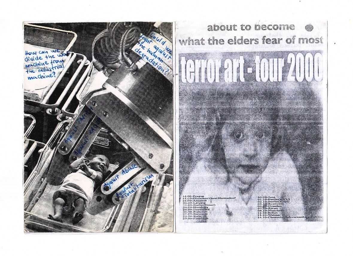 Anti-Estetică. Experiențe performative muzicale (bruitism, industrial), vizuale (fanzine, pliante, postere) transgresiune a regulilor și formelor estetice academice, contra culturii tradiționale și mainstream.