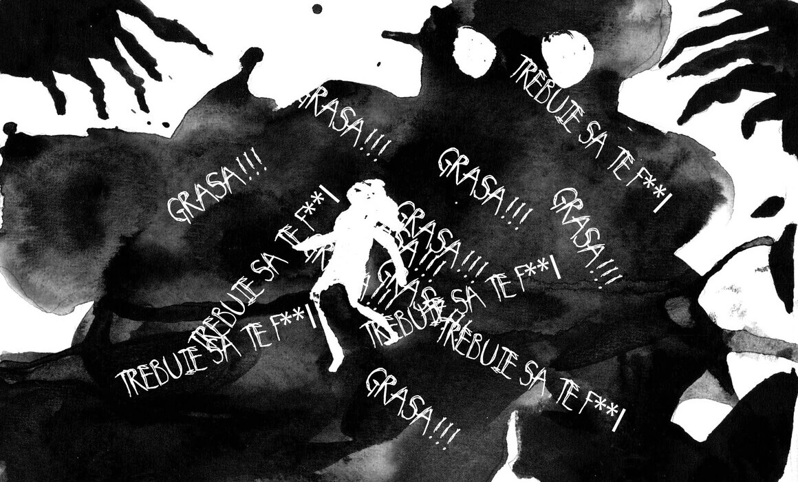 „La momentul respectiv, o spun cu regret, credeam că cine nu rezistă nu are ce căuta în lumea asta”, zice G. despre perioada în care a studiat actorie la Universitatea „Lucian Blaga” din Sibiu. Body shaming-ul a făcut constant parte din discursul profesorilor, de la asistenta care recomanda diete de slăbire cu legume albe — „a fost prima dată când mi s-a spus că sunt grasă și imobilă. Nu eram, lucru pe care îl observ din pozele de la admitere” — până la profesor care „mi-a spus, în fața colegilor: „Colegele tale o să se mai descurce cumva, că mai dau din gene, tu ești urâtă ca un buhai de baltă, semeni cu Magda Catone. Dacă vrei să reușești în teatru trebuie să înveți să te f..i bine”. Mi-a dat ca exemplu o actriță despre care mi-a spus la fel, că e urâtă, dar a reușit pentru că îi f...a pe toți și mi-a spus că asta e șansa mea”. G. și-a retras dosarul după primul semestru și a intrat la Actorie la Cluj. „Din păcate, în timp, am ajuns să internalizez ideea că sunt mai urâtă decât colegele mele și asta m-a afectat atât profesional, cât și în relațiile pe care le-am avut cu colegii și profesorii”.