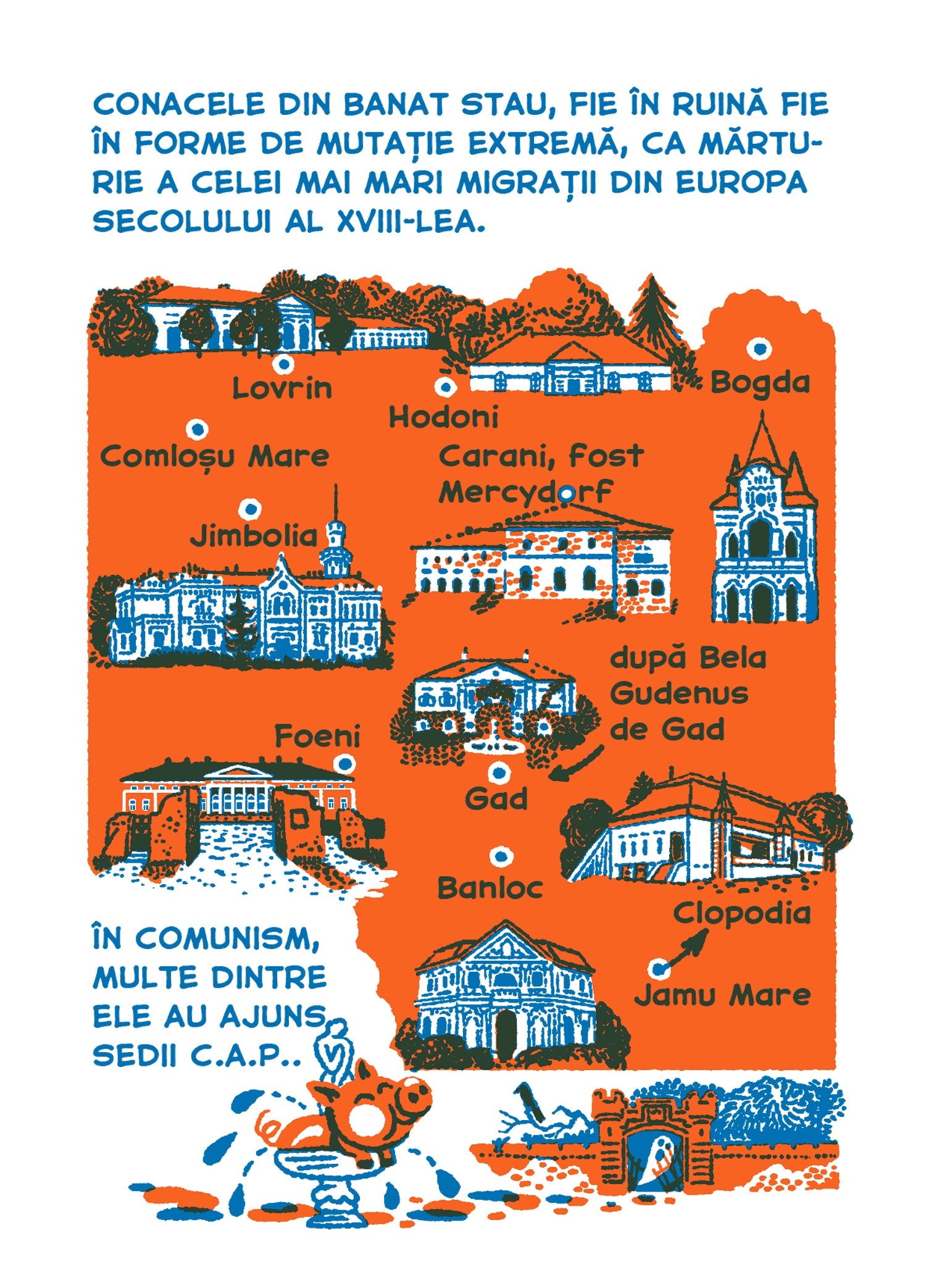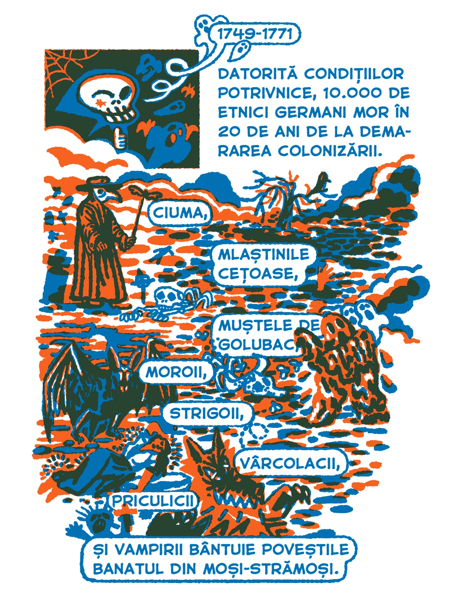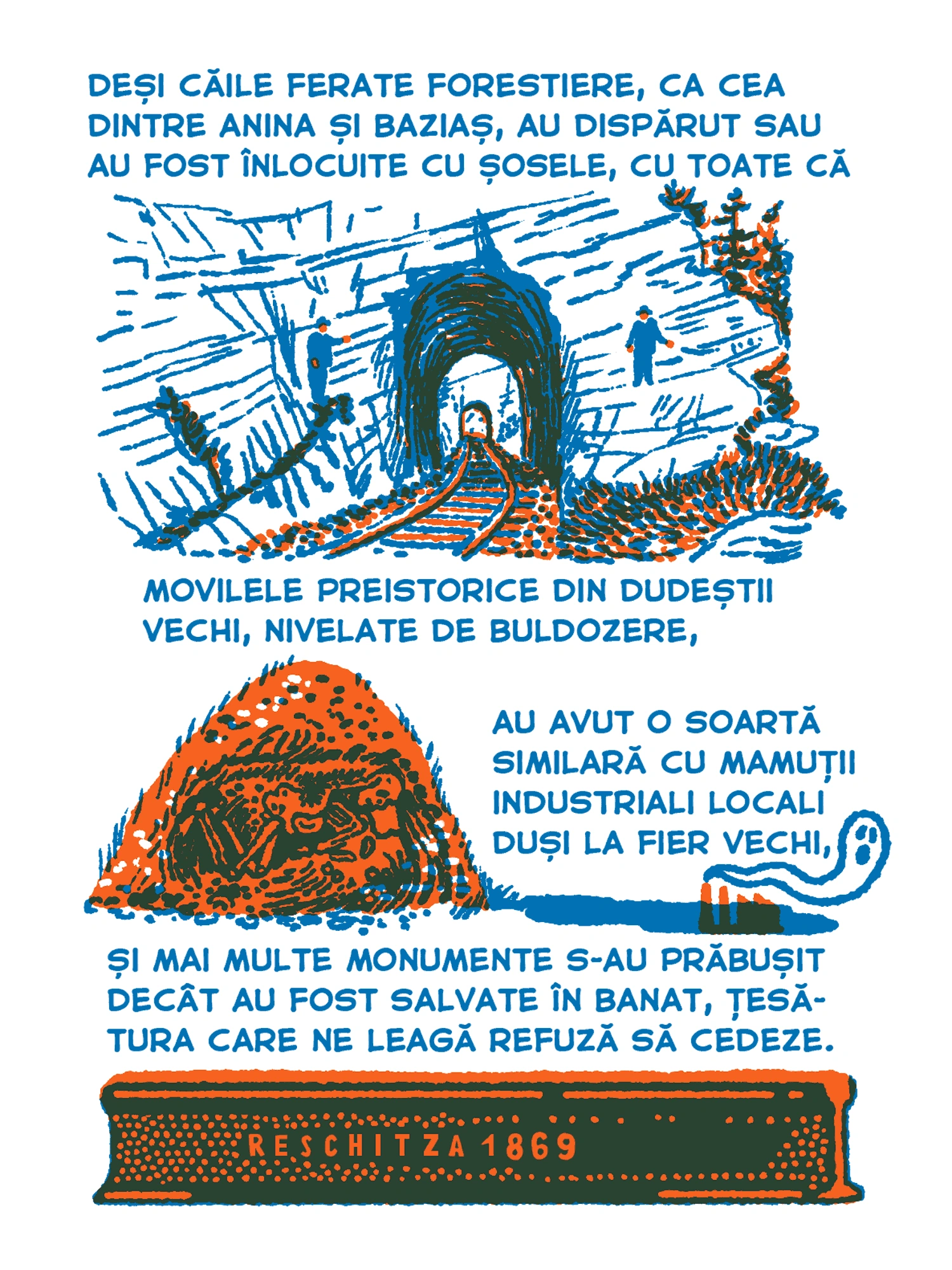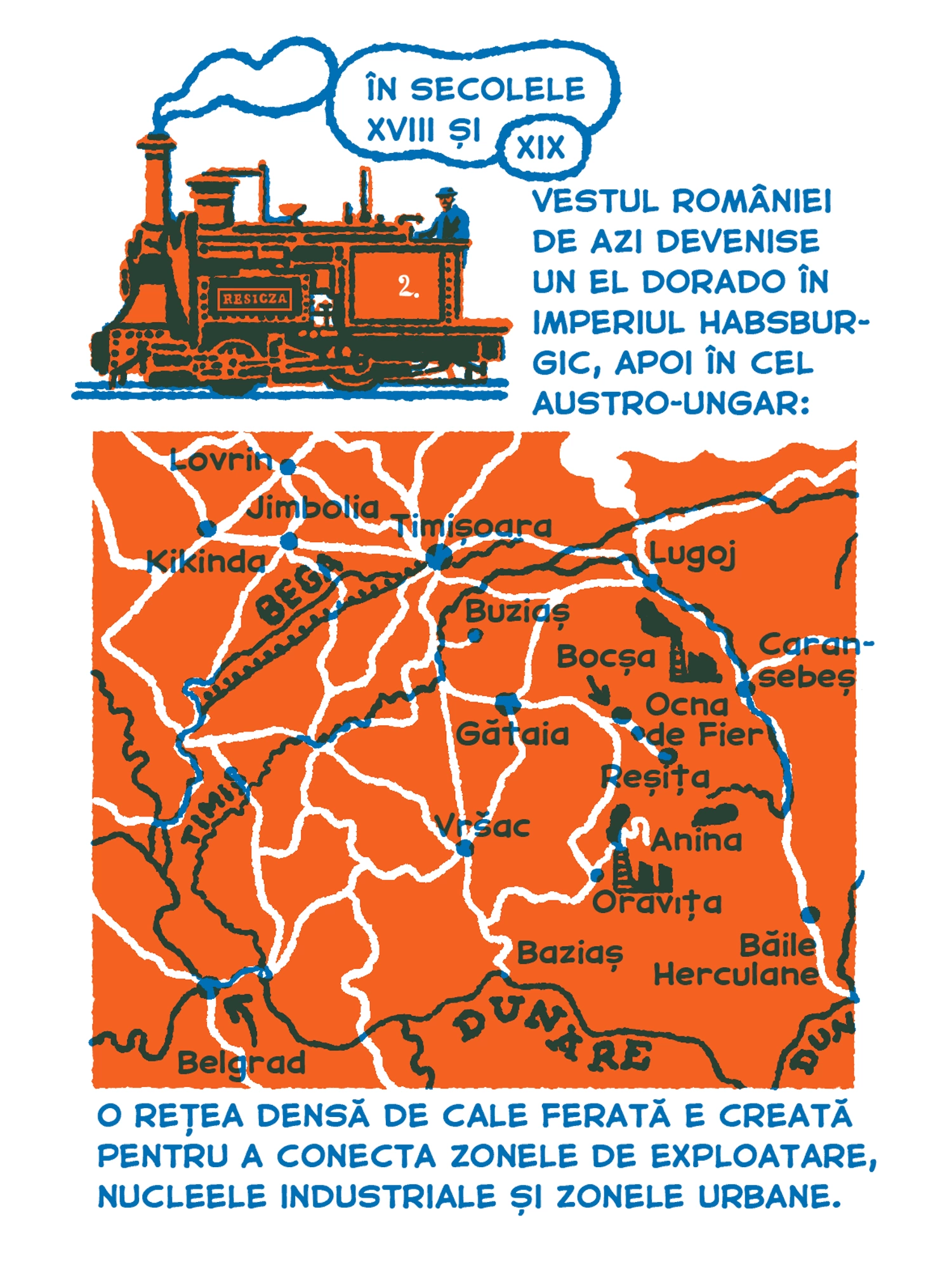 Începând de azi, publicăm pe Scena9 patru benzi desenate în care primitivprint adună fragmente din această istorie a mișcării. Priculici, moroi, strigoi și vampiri invadează noile colonii ale Imperiului Habsburgic, movile preistorice-și împart soarta cu mamuți industriali și căile ferate forestiere se pierd în negura de vest, prin care vom bântui săptămâna asta. Prima bandă desenată, e un fast forward prin istoria Banatului.