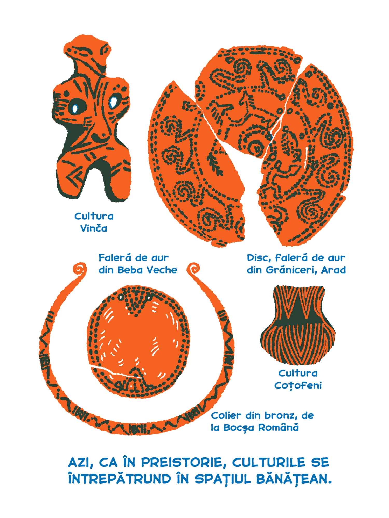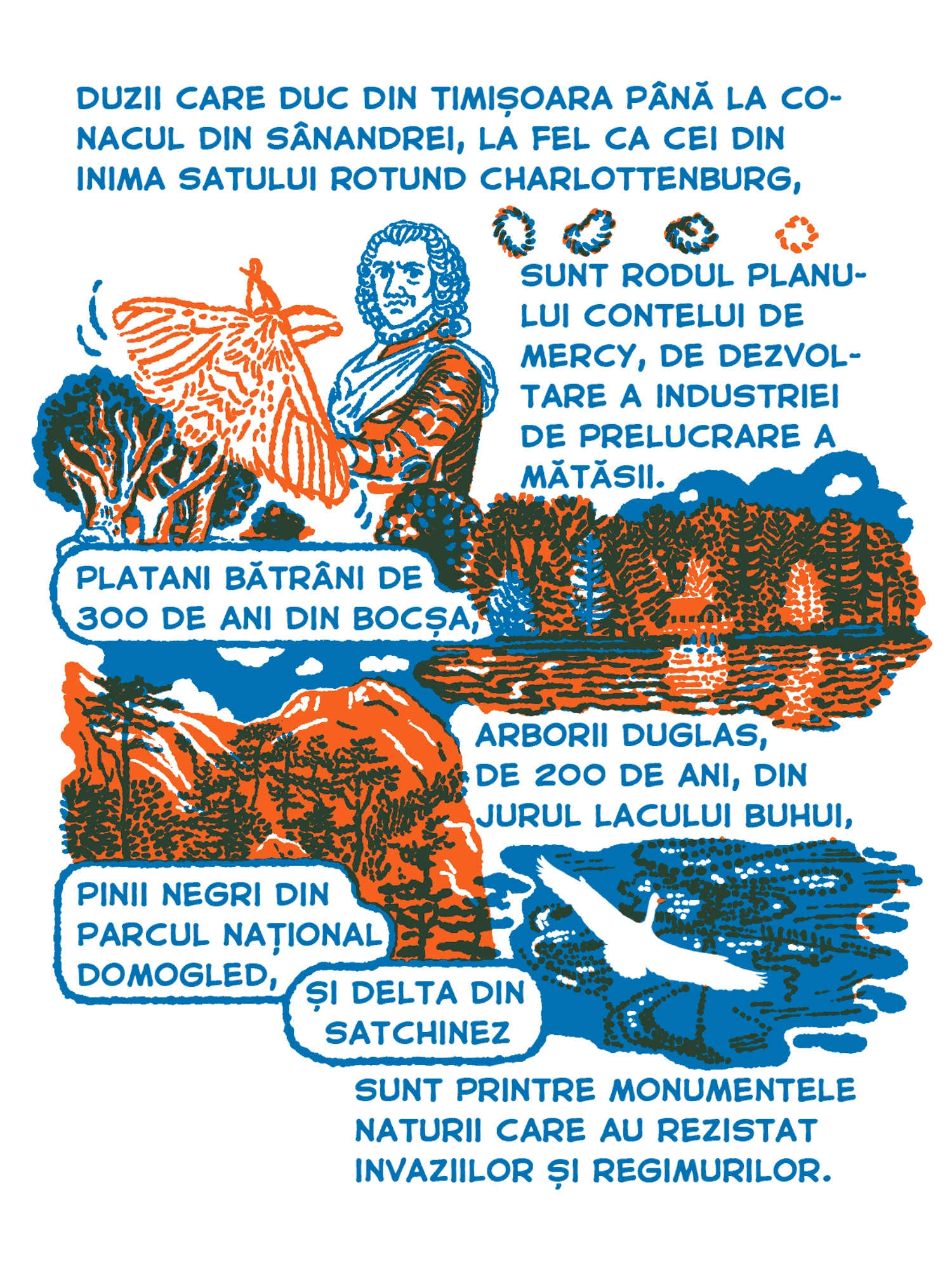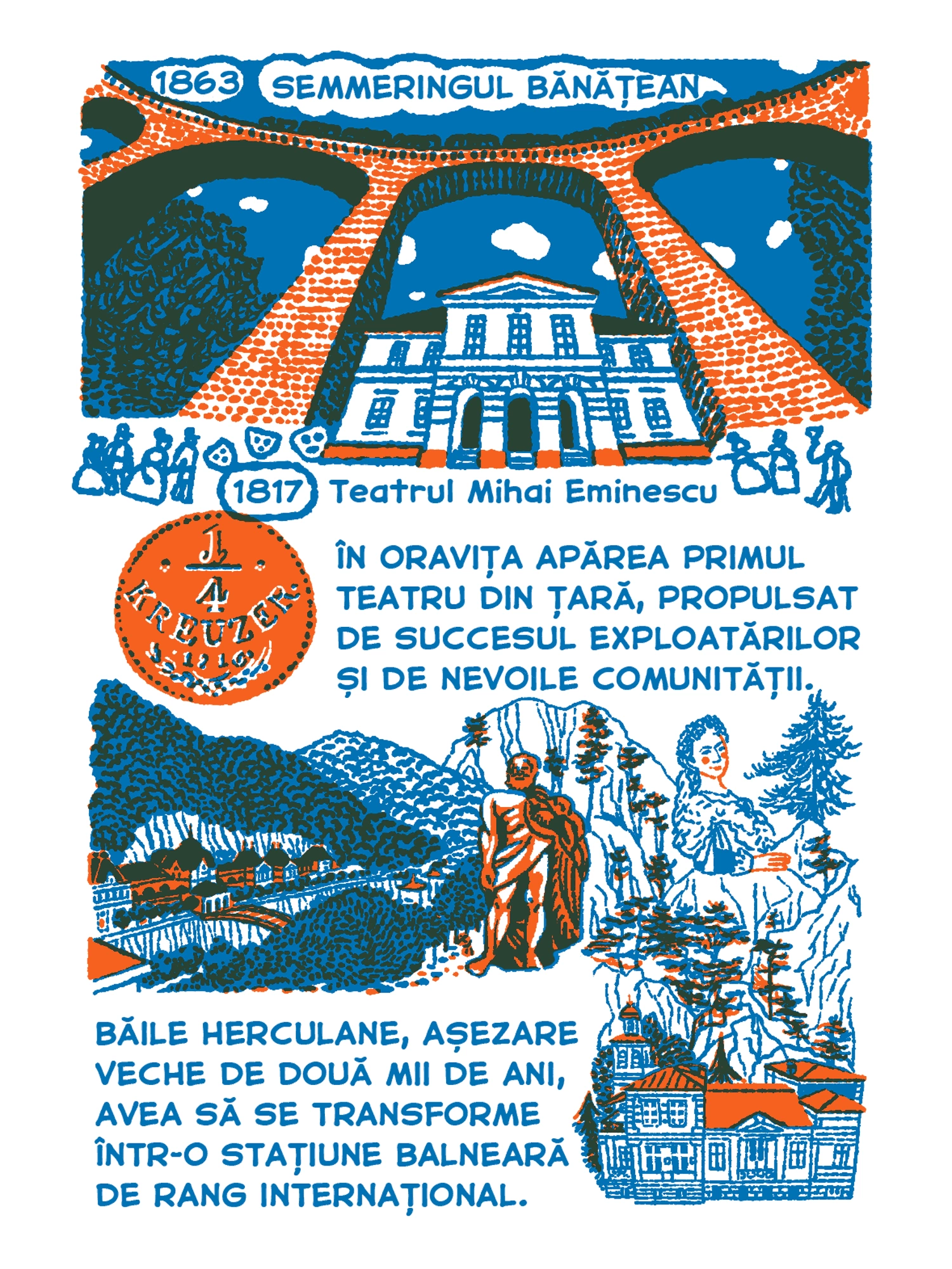 Tur Banat e unul dintre capitolele acestei istorii adunate sub umbrela Cămine în mișcare. Creat de primitivprint, adică ilustratoarea Sorina Vazelina și artistul vizual Alexandru Grigore (despre care am povestit aici), Tur Banat combină banda desenată cu ilustrația și serigrafia, pentru a reuni figuri locale remarcabile, obiective de patrimoniu național și industrial, rezervații și legende din regiunea Banatului, într-un amalgam de afișe, vederi, abțibilduri și un ghid răsfoibil.