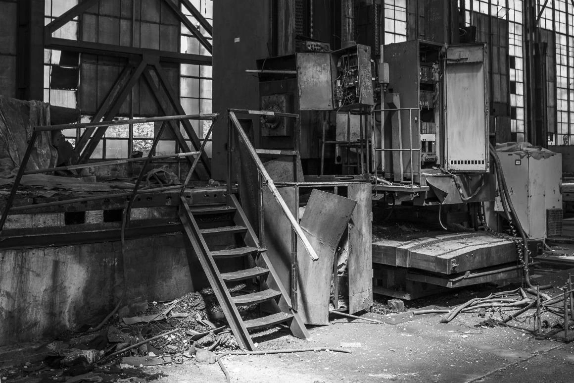 Dat fiind faptul că Fortus (numele actual al Combinatului) este privatizat și se află în insolvență, accesul în interiorul halelor a fost dificil. În urma mai multor telefoane și discuții cu directorul general, am reușit să intru în două hale, sub supravegherea strictă a unui inginer șef, a cărui principală activitate era cea de a păzi ultimele rămășițe ale unor utilaje abandonate. În momentul în care mi-a deschis o ușă mică și am intrat, mi-a venit să plâng. Sufletul mi-a fost secerat de liniștea morbidă care se află acolo. Am fost dărâmat de vidul acelei hale. Nu mai există nimic, niciun utilaj, niciun om care să țipe, niciun zgomot, nimic. Doar stâlpii de susținere și adâncituri în care au fost amplasate utilajele. Pe alocuri mai vedeam vegetație. Se auzeau bucățile de sticlă rămase, prinse într câte-o bucată de fier, care se loveau de pereții metalici și sunetul vântului care trecea prin geamurile sparte. Am făcut câteva fotografii acolo, apoi am mers într-o altă hală. Primul lucru pe care l-am văzut a fost un cârlig căzut, încă conectat de macara prin niște fire groase din metal. În acea hală erau depozitate câteva utilaje, care cel mai probabil vor muri ca fier vechi. Reprezentând cândva o tehnologie de ultimă generație, acele mecanisme au fost lăsate la voia sorții și a ruginei.