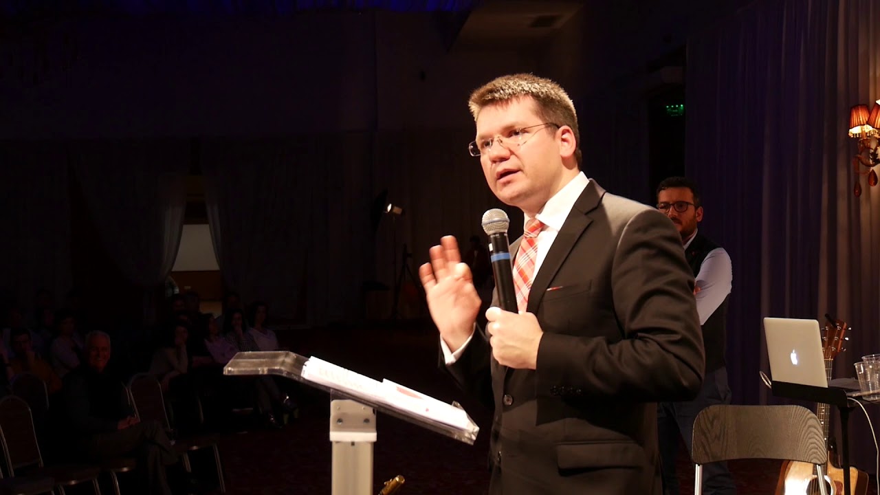 Neamțu poartă un costum negru cu o cravată în carouri roșii. E sobru, dar și puțin romantic, după cum momentul o cere. Aflasem despre el înainte să urce pe scenă, de la o reprezentantă a organizatorilor - Biserica baptistă Bunavestire -, că a scris mai mult de zece cărți, „câteva dintre ele fiind bestseller” și „a beneficiat de mentoratul spiritual oferit de poetul Ioan Alexandru, filosoful Andrew Louth și filosoful Andrei Pleșu”. Dincolo de asta, e un personaj acuzat în trecut de simpatii legionare, fondator al unui partid trecut fulgerător pe scena politică românească acum vreo cinci-șase ani și primit vara trecută în PNL, chiar în ziua în care președintele partidului, Ludovic Orban, era prezent la lansarea cărții lui Neamțu despre Trump.