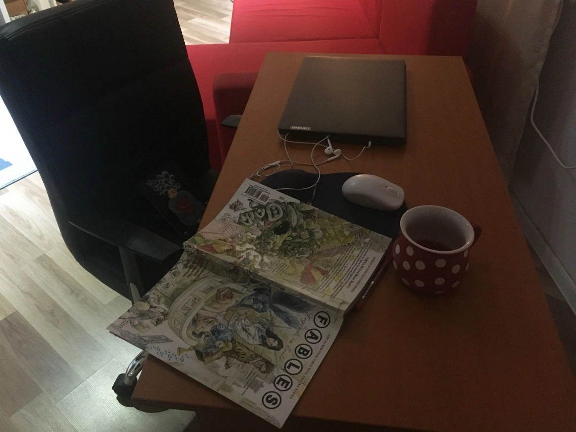 Lucratul de acasă, în contextul ultimelor două săptămâni, este cu totul altceva. Mi-am schimbat aproape toate rutinele, sar de la un lucru la altul și sunt mai puțin concentrată. Sigur, e o stare de anxietate generală, din ce citesc în articolele psihologilor și pe rețelele sociale, deci e mai puțin vorba de faptul că lucrăm de acasă, cât faptul că am fost luați pe nepusă masă, fără să avem timp să planificăm sau să ne obișnuim, la care se adaugă și alte temeri (de îmbolnăvire, sau „ce va fi cu job-ul meu”, etc). Nu găsim locul potrivit în care să lucrăm – eu am lucrat două zile din pat, iar în nopțile respective am dormit mai agitat și mai puțin. Mi-am făcut apoi loc ca găina la biroul meu mic, pe care stăteau strânse tot felul de lucruri și la care am stat doar de câteva ori de când l-am cumpărat (sunt cam patru ani de atunci). Mă bucur că scutesc timp cu drumul între pat și birou, însă pe termen lung am nevoie de soluții ca să înlocuiesc nevoia de a mă detașa de lucru, mai mult decât mersul în baie și bucătărie, unde fac excursii organizate de câteva ori pe zi. De regulă, prefer mai mult să scriu decât să vorbesc, și la birou îl bodogăneam uneori pe colegul meu care mă întrerupea ca să mă întrebe ceva sau să facă o glumă. Ei, uite că acum mi-e dor de glumele lui și sunt sătulă puțin de scris mailuri și mesaje.