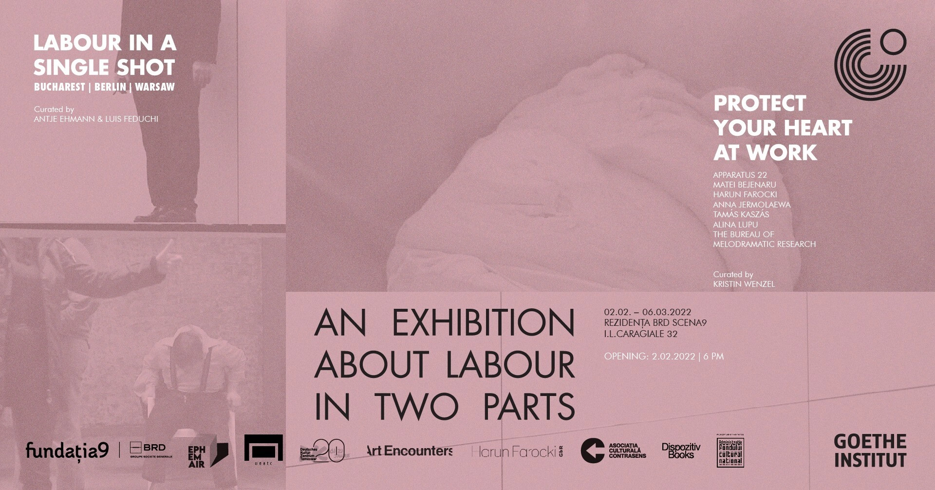 Labour in a Single Shot | Protect your heart at work: an exhibition about labour in two parts va putea fi vizitată la Rezidența BRD Scena9, pe strada I.L. Caragiale 32, în perioada 2 feb – 6 martie. Ore de vizitare: Ma – Vi: 16:00 – 20:00 / Sâ – Du: 13:00 – 20:00.