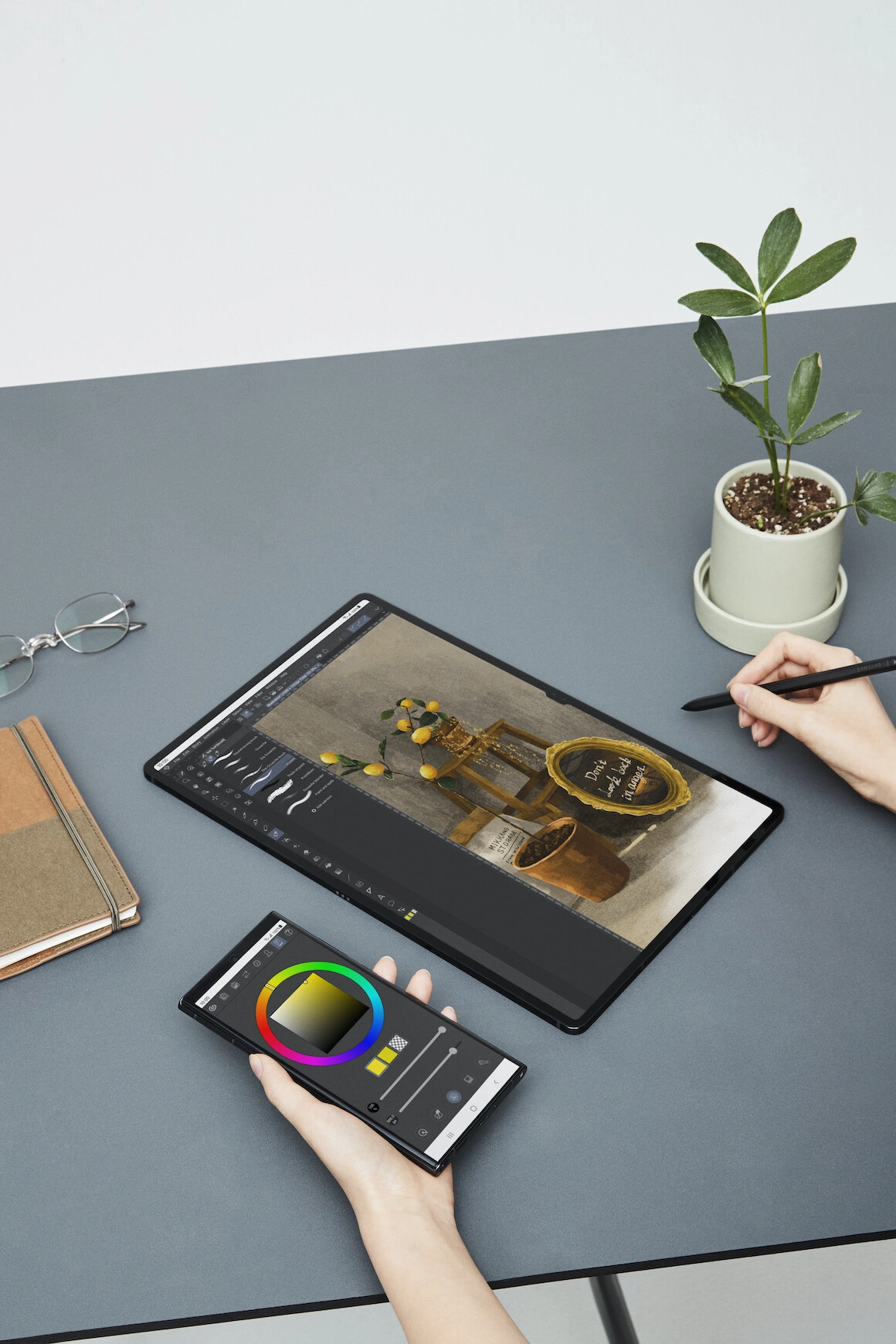 ⏩ Atât Galaxy Tab S8 Ultra, cât și S8+ vin cu un S Pen nou și îmbunătățit, ce oferă o experiență de scriere incredibilă, care imită alunecarea unui stilou pe hârtie. Iar printr-un parteneriat cu Clip Studio Paint, smartphone-ul se poate transforma într-o paletă digitală de culori, S Pen-ul într-o pensulă, iar ecranul extins al Galaxy Tab S8 într-o pânză.