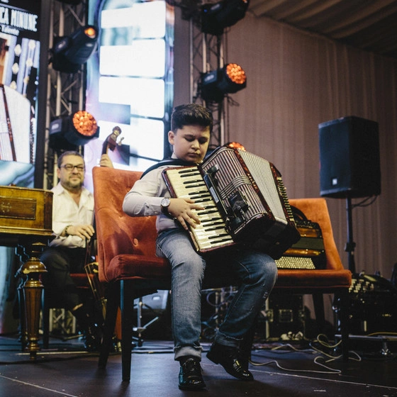 Cel mai mic acordeonist din festival, Dorinel Cutiuță din Năvodari, are 9 ani și 5 luni, cântă la acordeon de aproape doi ani, studiază pian de 3 ani, de 5 luni face și vioară. Prima melodie la acordeon a învățat-o pentru mama lui, să i-o cânte de ziua ei, o horă de-a bunicului, în Re major. Costel Cutiuță, tatăl, e și el acordeonist, iar mama, Sorina, e solistă. Au venit cu toții la festival și sunt mândri de Dorinel: „la 9 anișori, la cum cântă el, cred că va avea un viitor frumos. Generația copiilor din ziua de azi are o altfel de mentalitate, el e un copil de 9 ani și cântă cu acordeonul niște piese pe care eu nici acum nu pot să le stăpânesc cum le stăpânește el”, spune Costel. Dorinel visează să fie cel mai bun cu acordeonul, să conducă bine și să aibă o mașină frumoasă. Urcă pe scenă și face un program frumos, stă pe marginea scaunului ca să ajungă cu picioarele la podea.